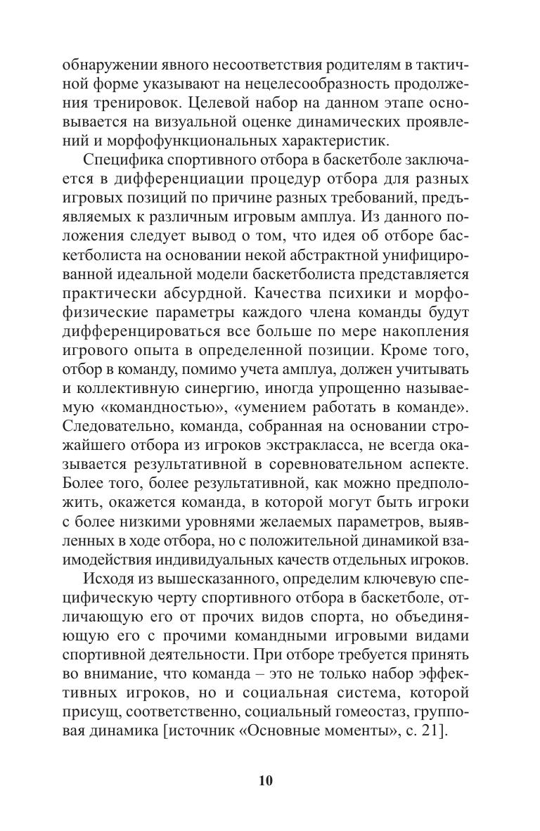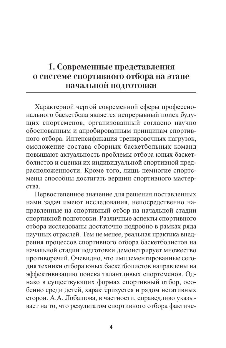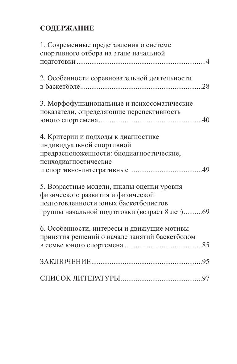 Данное методическое пособие посвящено основным аспектам системы спортивного отбора юных баскетболистов на начальном этапе их подготовки. Авторы анализируют современные подходы к спортивному отбору и акцентируют внимание на особенностях соревновательной деятельности в баскетболе. Рассмотрены интересы и движущие мотивы родителей и ребенка. Получен социологический портрет семьи, вступающей в многолетний процесс спортивной подготовки. Практическая значимость работы заключается в разработке возрастных моделей и шкал оценки физического развития и физической подготовленности юных баскетболистов, основанных на исследованиях, проведенных в СДЮСШОР баскетбольного клуба «Минск 2006».