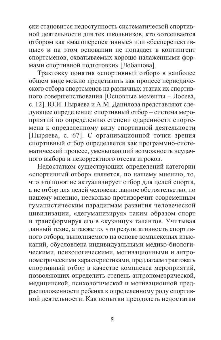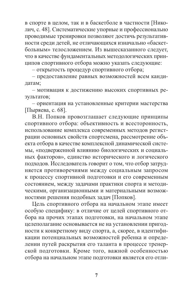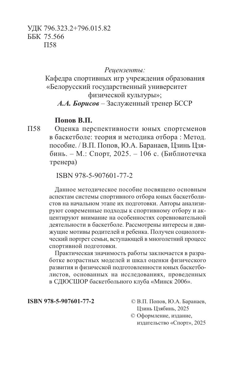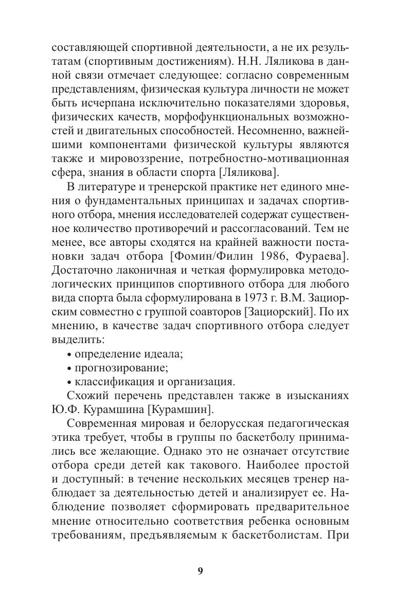 Данное методическое пособие посвящено основным аспектам системы спортивного отбора юных баскетболистов на начальном этапе их подготовки. Авторы анализируют современные подходы к спортивному отбору и акцентируют внимание на особенностях соревновательной деятельности в баскетболе. Рассмотрены интересы и движущие мотивы родителей и ребенка. Получен социологический портрет семьи, вступающей в многолетний процесс спортивной подготовки. Практическая значимость работы заключается в разработке возрастных моделей и шкал оценки физического развития и физической подготовленности юных баскетболистов, основанных на исследованиях, проведенных в СДЮСШОР баскетбольного клуба «Минск 2006».