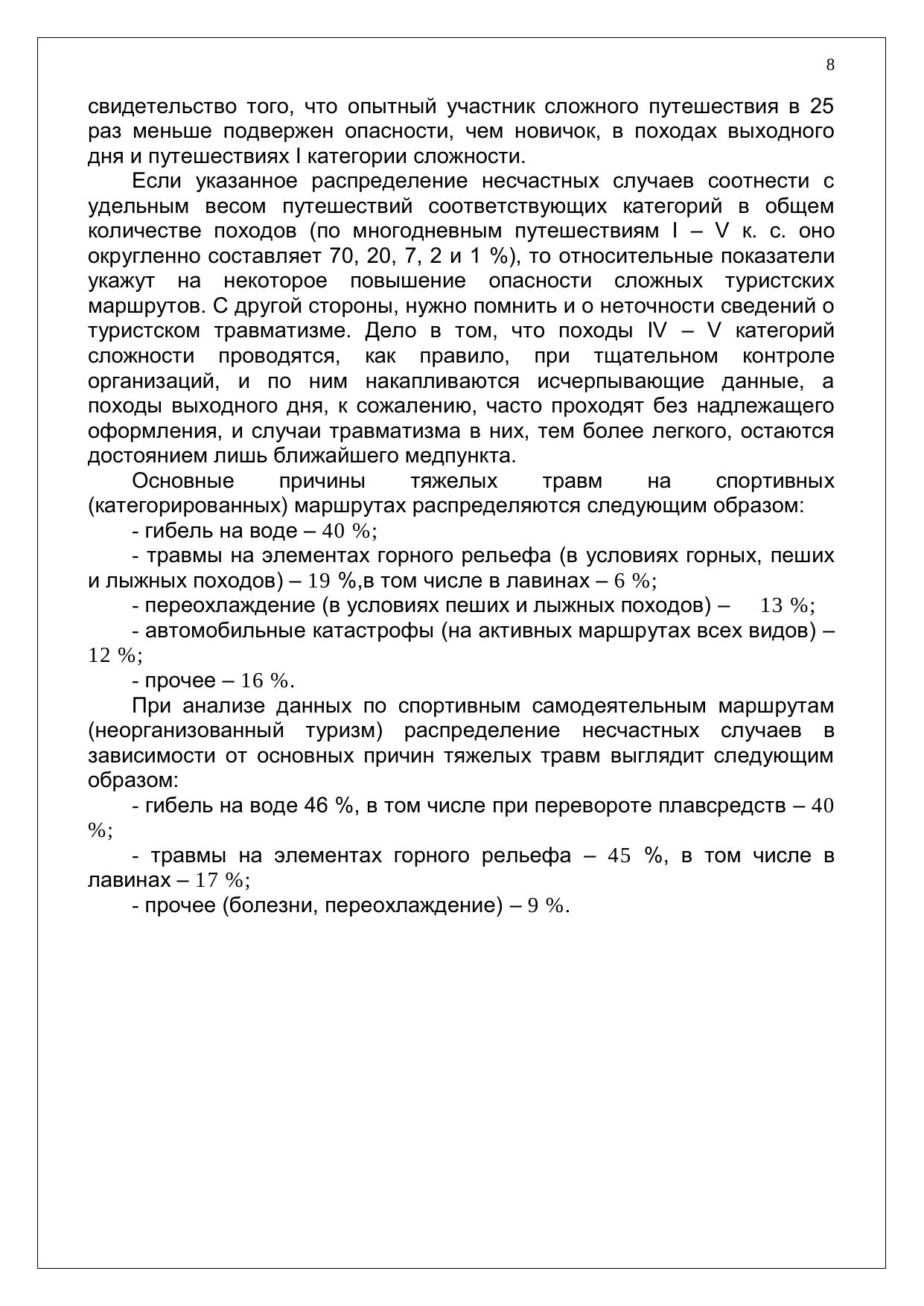 Проблема обеспечения безопасности путешествий – одна из самых важных и в то же время одна из самых сложных проблем туристической деятельности. В данном учебно-методическом пособии в соответствии с новыми учебными планами раскрываются основные вопросы обеспечения безопасности активного туризма. Рассматриваются организационные и методические основы организации безопасности туристов в пеших походах.