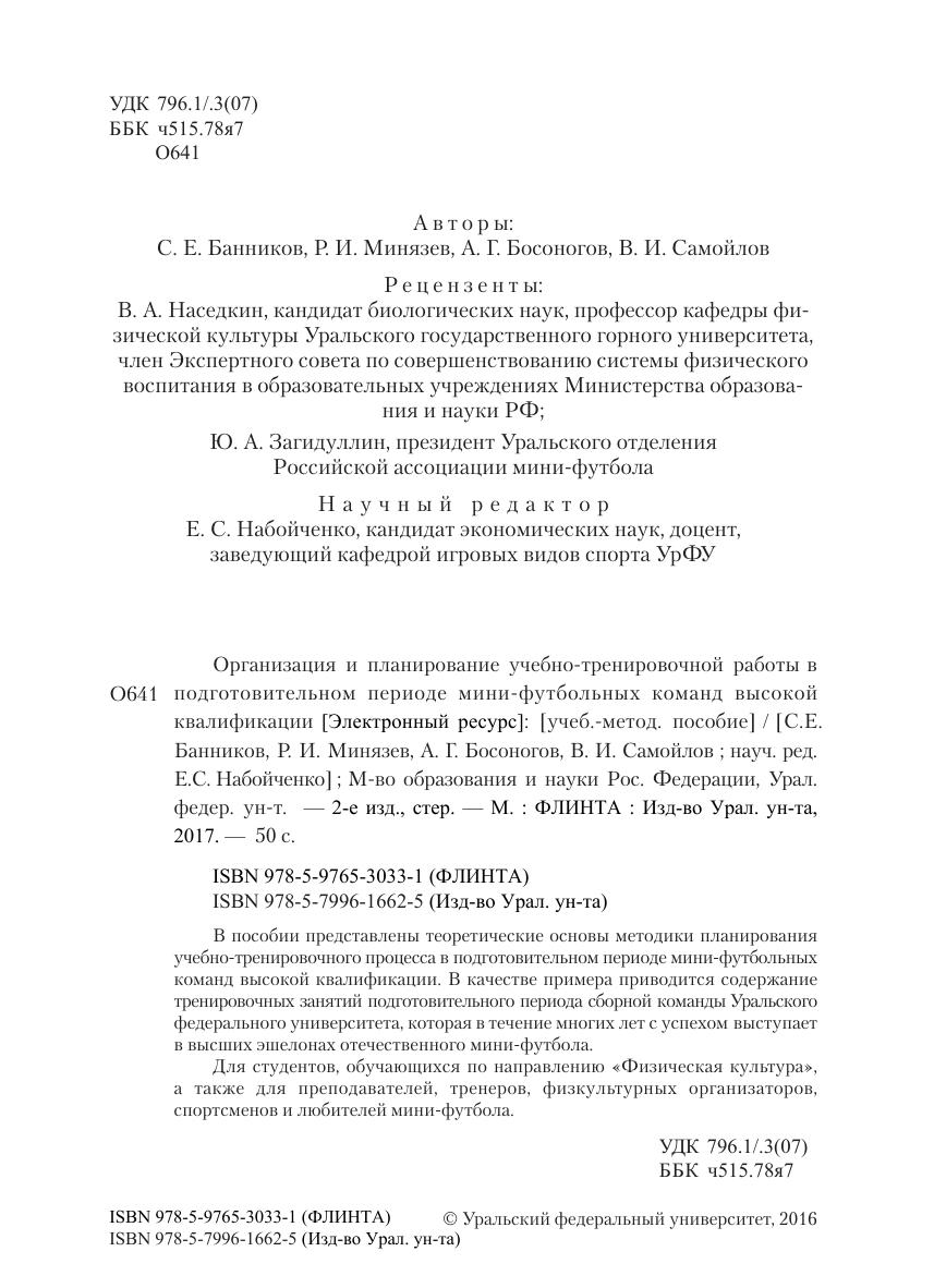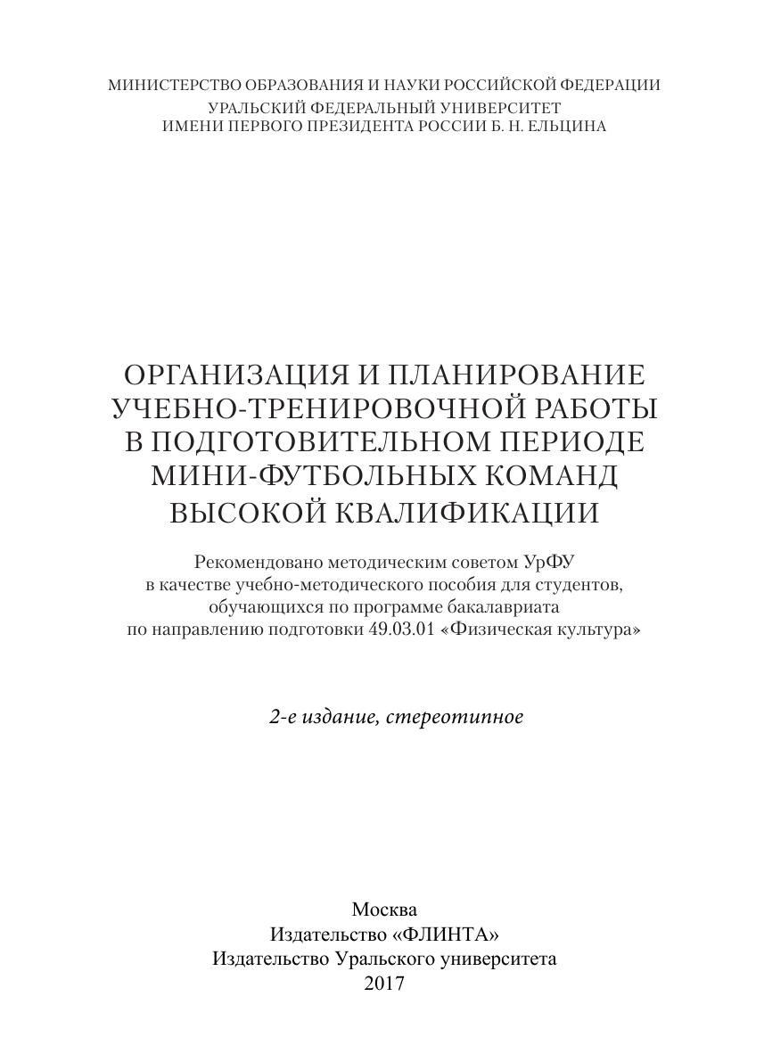 Организация и планирование учебно-тренировочной работы в подготовительном периоде мини-футбольных команд высокой квалификации : Учебно-методическое пособие