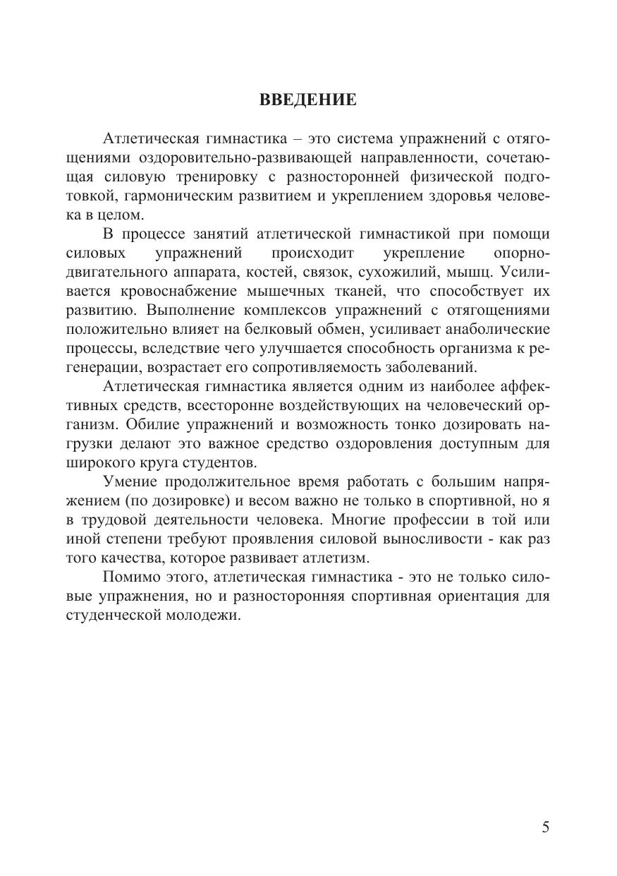 В пособии рассматриваются вопросы подготовки и организации занятий атлетической гимнастикой со студентами вуза. Приводится краткая характеристика силовых видов спорта, описание необходимого спортивного инвентаря и оборудования, особенности питания. Подробно описаны основные упражнения и представлены примерные комплексы упражнений.