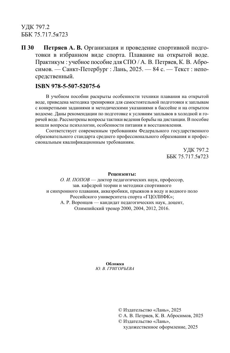 В учебном пособии раскрыты особенности техники плавания на открытой воде, приведена методика тренировки для самостоятельной подготовки к заплывам с конкретными заданиями и методическими указаниями в бассейне и на открытом водоеме. Даны рекомендации по подготовке к условиям заплывов в холодной и горячей воде. Рассмотрены вопросы тактики ведения борьбы на дистанции. В пособие вошли вопросы психологии, особенности питания и восстановления. Соответствует современным требованиям Федерального государственного образовательного стандарта среднего профессионального образования и профессиональным квалификационным требованиям.