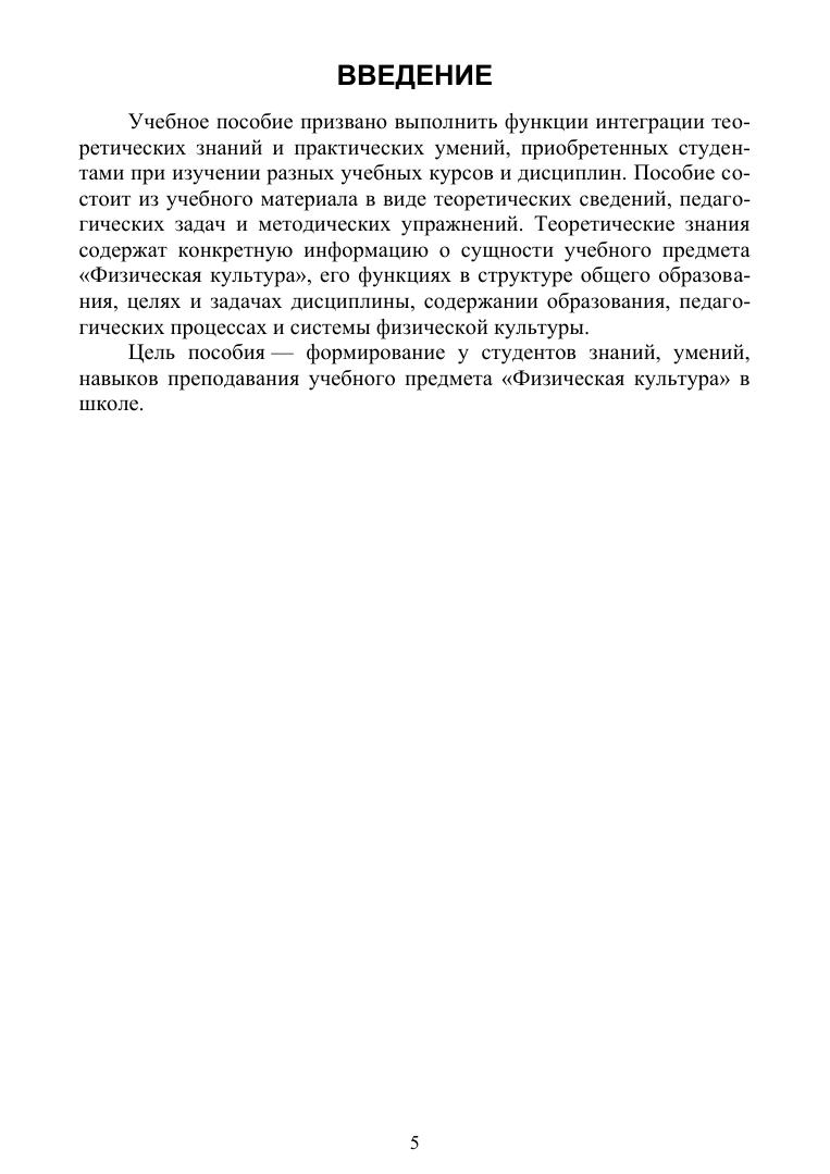 Пособие может быть использовано при чтении лекций и проведении практических занятий по дисциплине «Методика обучения и воспитания физической культуре», входящей в учебные планы направлений подготовки: «Физическая культура», «Педагогическое образование». Позволяет организовать самостоятельную работу студентов по организации образовательного процесса по учебному предмету «Физическая культура» в школе.