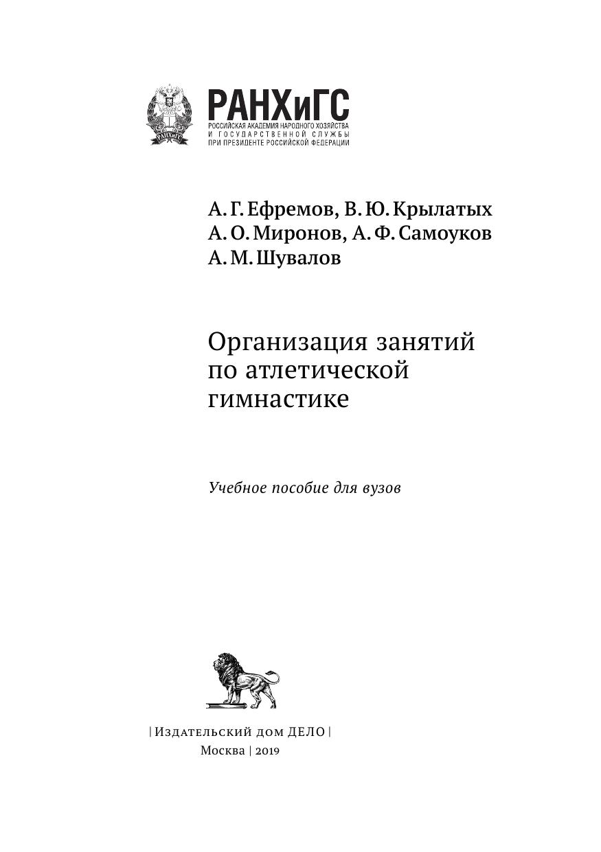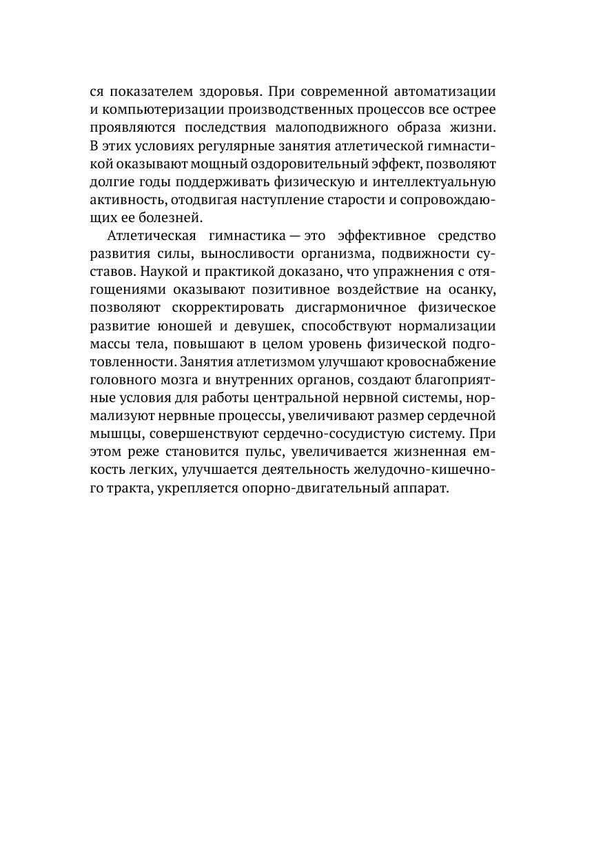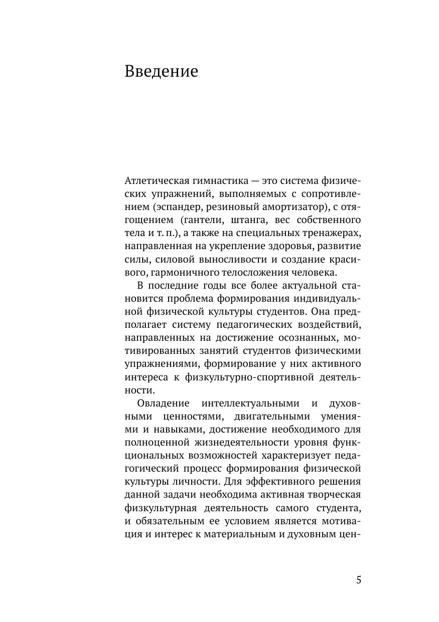 Учебное пособие содержит материалы по методике организации тренировочного процесса по атлетической гимнастике как в рамках учебного процесса, так и самостоятельно и направлено на формирование у будущих специалистов в области государственной службы потребности в систематических занятиях атлетической гимнастикой и ведении здорового образа жизни. Пособие предназначено для преподавателей кафедр физической культуры вузов, а также студентов РАНХиГС, желающих заниматься атлетической гимнастикой. Утверждено учебно-методическим советом РАНХиГС.