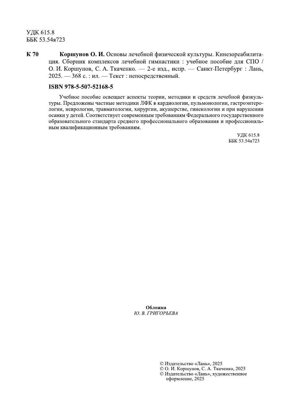 Учебное пособие освещает аспекты теории, методики и средств лечебной физкультуры. Предложены частные методики ЛФК в кардиологии, пульмонологии, гастроэнтерологии, неврологии, травматологии, хирургии, акушерстве, гинекологии и при нарушении осанки у детей. Соответствует современным требованиям Федерального государственного образовательного стандарта среднего профессионального образования и профессиональным квалификационным требованиям.