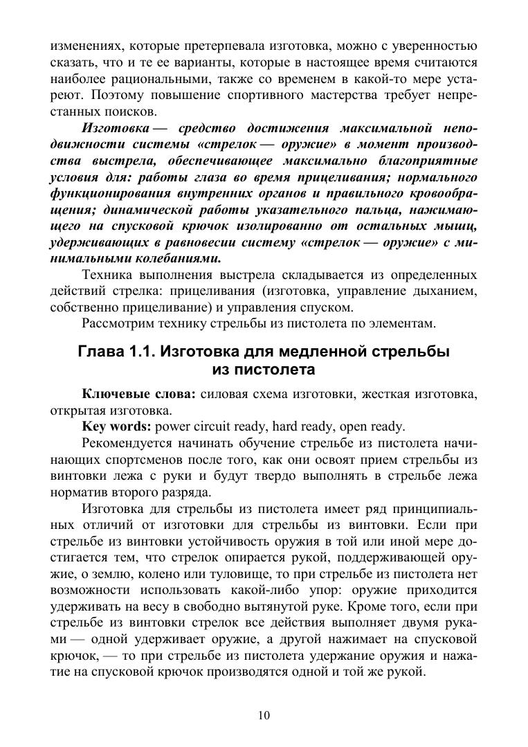 Пособие продолжает серию книг, посвящённых технике и тактике стрельбы из спортивного оружия, и соответствует требованиям Учебно-методического комплекса основной базовой программы по специализации «Пулевая стрельба» в системе спортивных образовательных учреждений среднего профессионального образования. В пособии последовательно рассматривается система основных положений и идей технической подготовки стрелка-пистолетчика: совокупность подготовительных и стрелковых упражнений из спортивного пистолета, условия, порядок и правила выполнения упражнений МП-60, МПП-60, МП-60СС, МП-60М, ПП-40 и ПП-60, требования соревнований к изготовке для стрельбы из пистолета, педагогические приёмы в обучении медленной стрельбе и скоростной стрельбе по появляющимся мишеням. Данные положения направлены на разработку различных методик обучения и составляют суть технологии совершенствования технической подготовки стрелка-пистолетчика. Соответствует современным требованиям Федерального государственного образовательного стандарта среднего профессионального образования и профессиональным квалификационным требованиям. Книга предназначена для преподавателей и тренеров, специализирующихся в пулевой спортивной стрельбе, а также студентов в системе спортивных образовательных учреждений среднего профессионального образования.