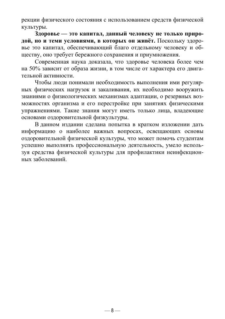 В учебном пособии описаны основные закономерности изменения адаптационных резервов человека под влиянием оздоровительной физической культуры. Обосновывается потребность организма человека в регулярных физических нагрузках. Соответствует современным требованиям Федерального государственного образовательного стандарта среднего профессионального образования и профессиональным квалификационным требованиям. Пособие предназначено для студентов ссузов, преподавателей физического воспитания и всех тех, кто заинтересован в здоровом образе жизни.