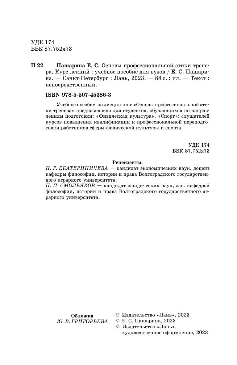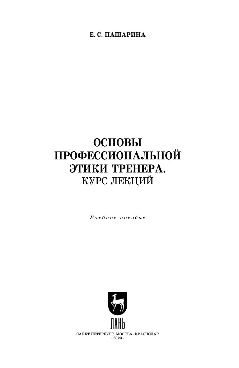 Учебное пособие по дисциплине «Основы профессиональной этики тренера» предназначено для студентов, обучающихся по направлениям подготовки: «Физическая культура», «Спорт», слушателей курсов повышения квалификации и профессиональной переподготовки работников сферы физической культуры и спорта.