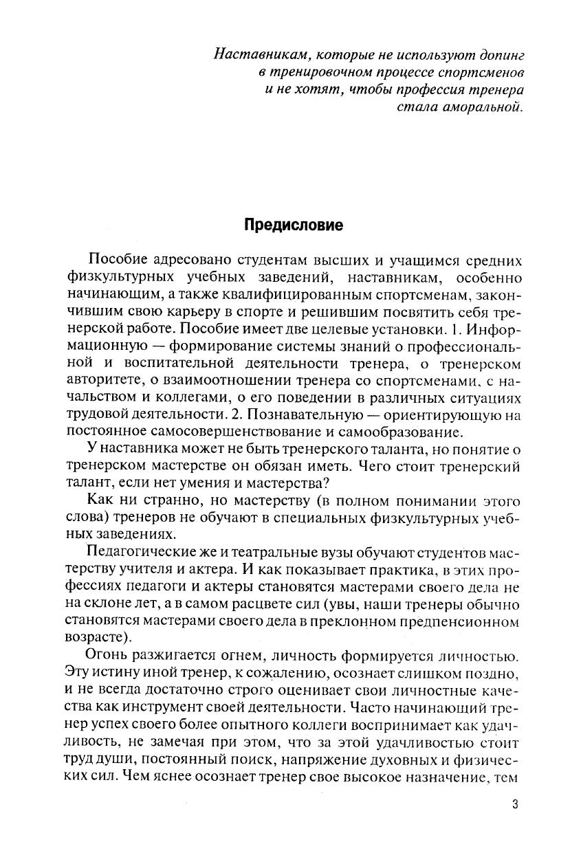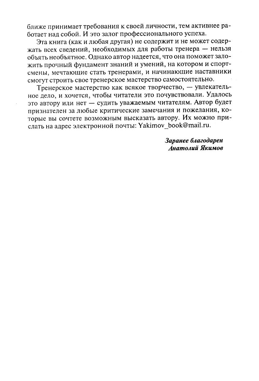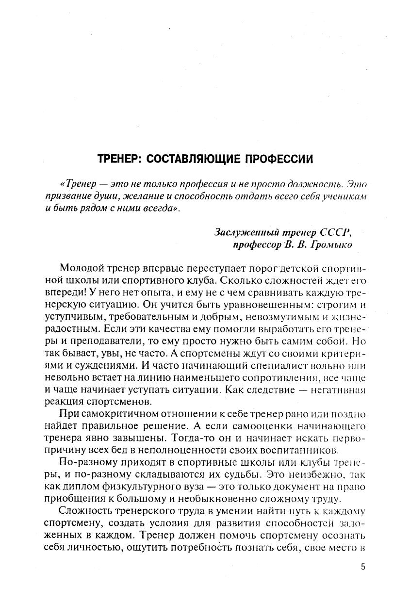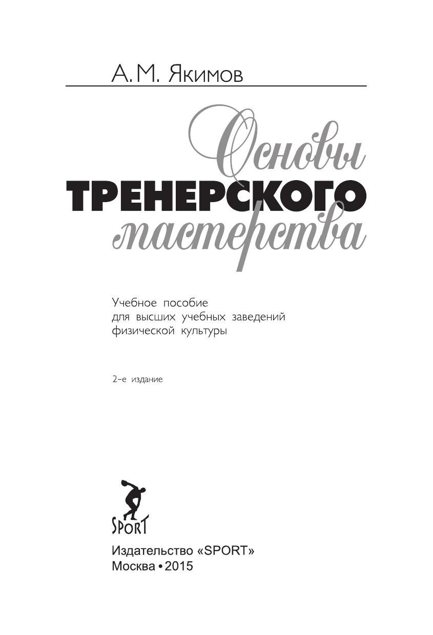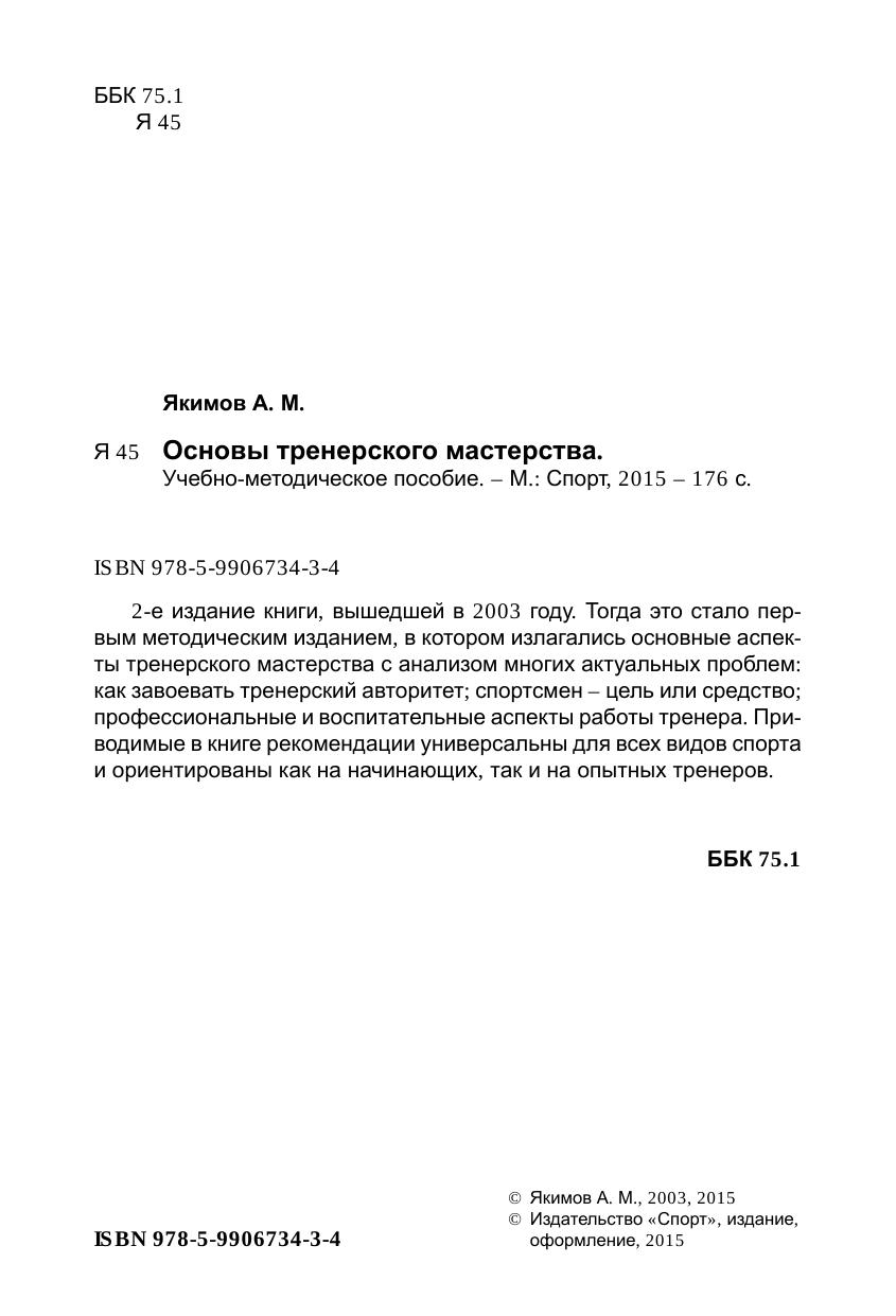 2-е издание книги, вышедшей в 2003 году. Тогда это стало первым методическим изданием, в котором излагались основные аспекты тренерского мастерства с анализом многих актуальных проблем: как завоевать тренерский авторитет; спортсмен – цель или средство; профессиональные и воспитательные аспекты работы тренера. Приводимые в книге рекомендации универсальны для всех видов спорта и ориентированы как на начинающих, так и на опытных тренеров.