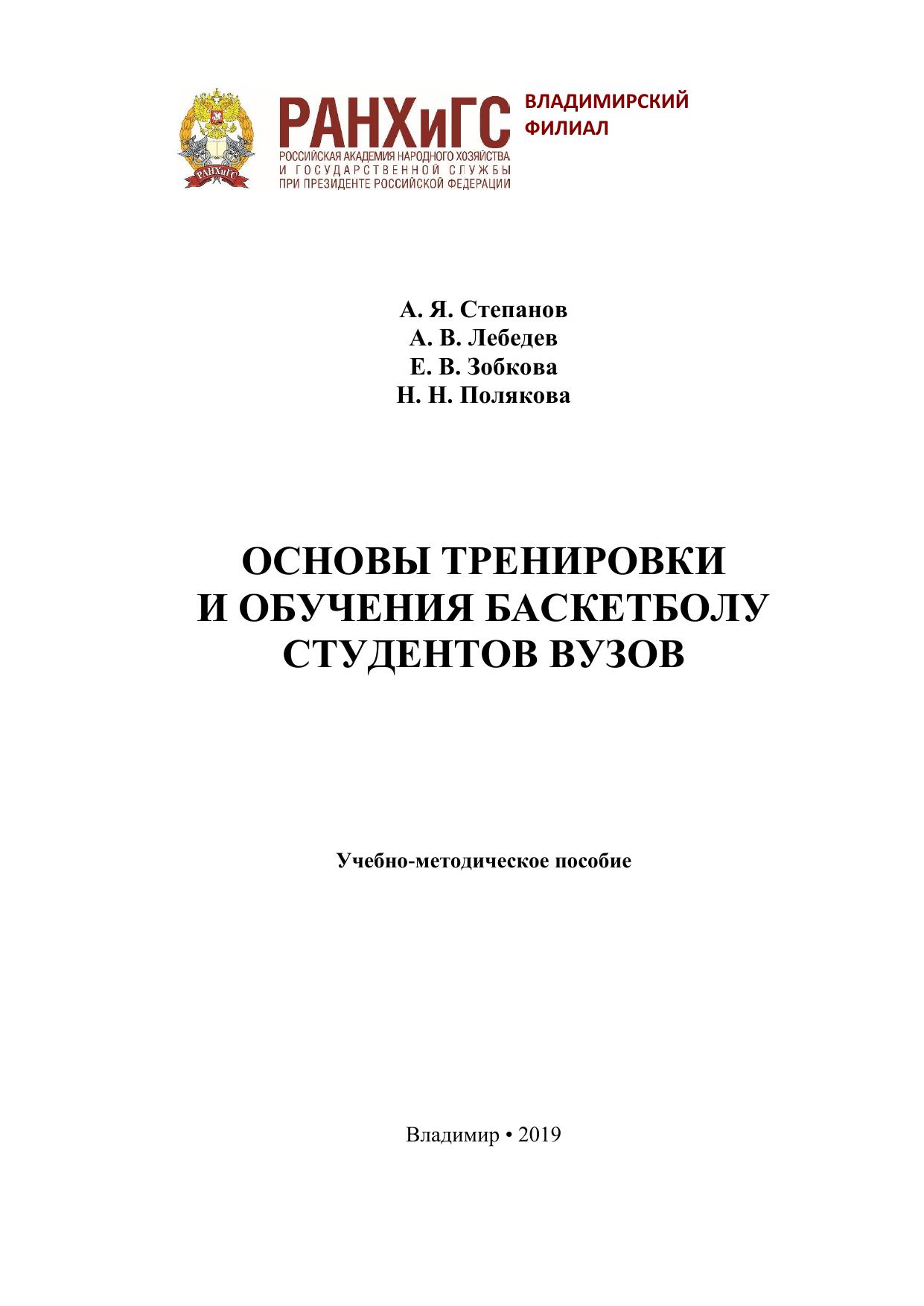 Основы тренировки и обучения баскетболу студентов вузов