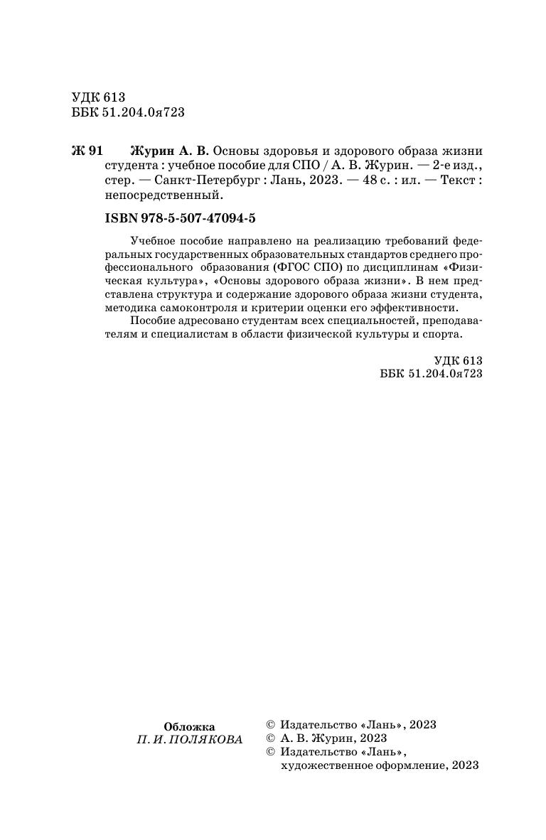 Учебное пособие направлено на реализацию требований Федеральных государственных образовательных стандартов среднего профессионального образования (ФГОС СПО) по дисциплинам «Физическая культура», «Основы здорового образа жизни». В нем представлена структура и содержание здорового образа жизни студента, методика самоконтроля и критерии оценки его эффективности. Соответствует современным требованиям Федерального государственного образовательного стандарта среднего профессионального образования и профессиональным квалификационным требованиям. Пособие адресовано студентам всех специальностей, преподавателям и специалистам в области физической культуры и спорта.