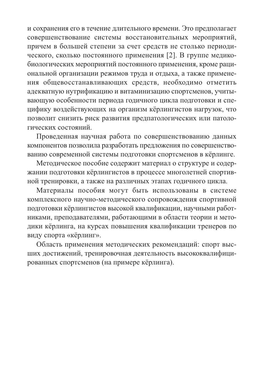 Методическое пособие содержит материал о структуре и содержании подготовки кёрлингистов в процессе многолетней спортивной тренировки, а также на различных этапах годичного цикла. Материалы пособия могут быть использованы в системе