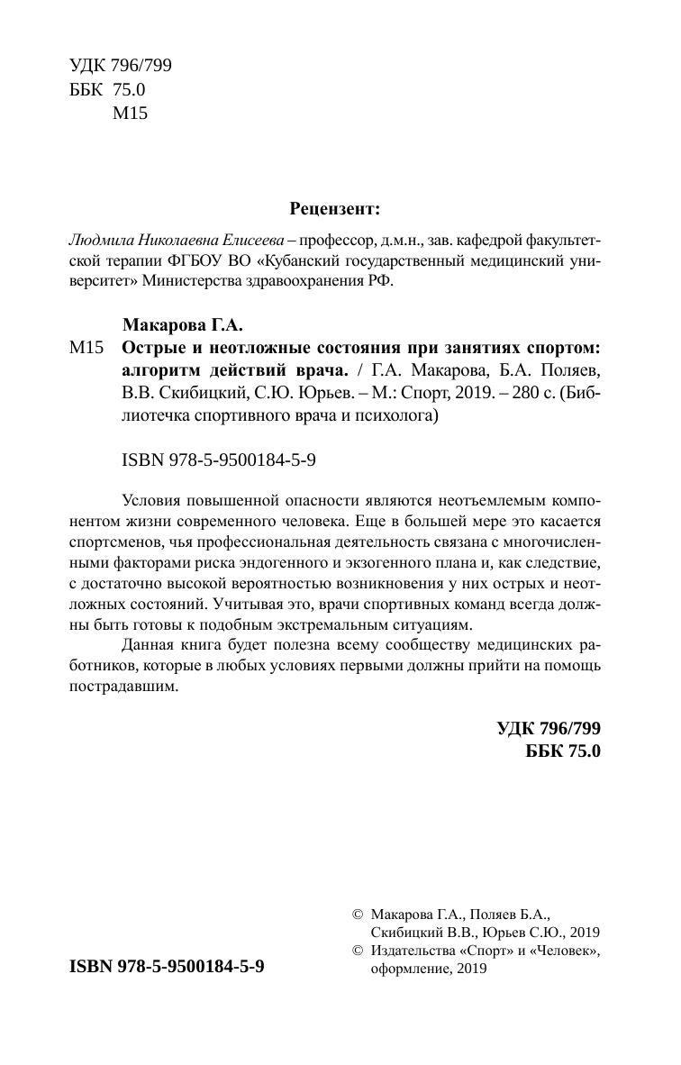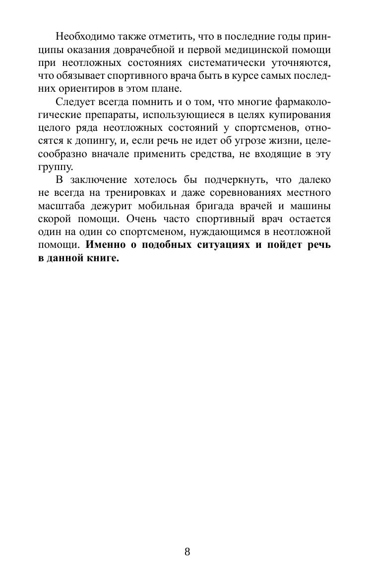 Условия повышенной опасности являются неотъемлемым компонентом жизни современного человека. Еще в большей мере это касается спортсменов, чья профессиональная деятельность связана с многочисленными факторами риска эндогенного и экзогенного плана и, как следствие, с достаточно высокой вероятностью возникновения у них острых и неотложных состояний. Учитывая это, врачи спортивных команд всегда должны быть готовы к подобным экстремальным ситуациям. Данная книга будет полезна всему сообществу медицинских работников, которые в любых условиях первыми должны прийти на помощь пострадавшим.