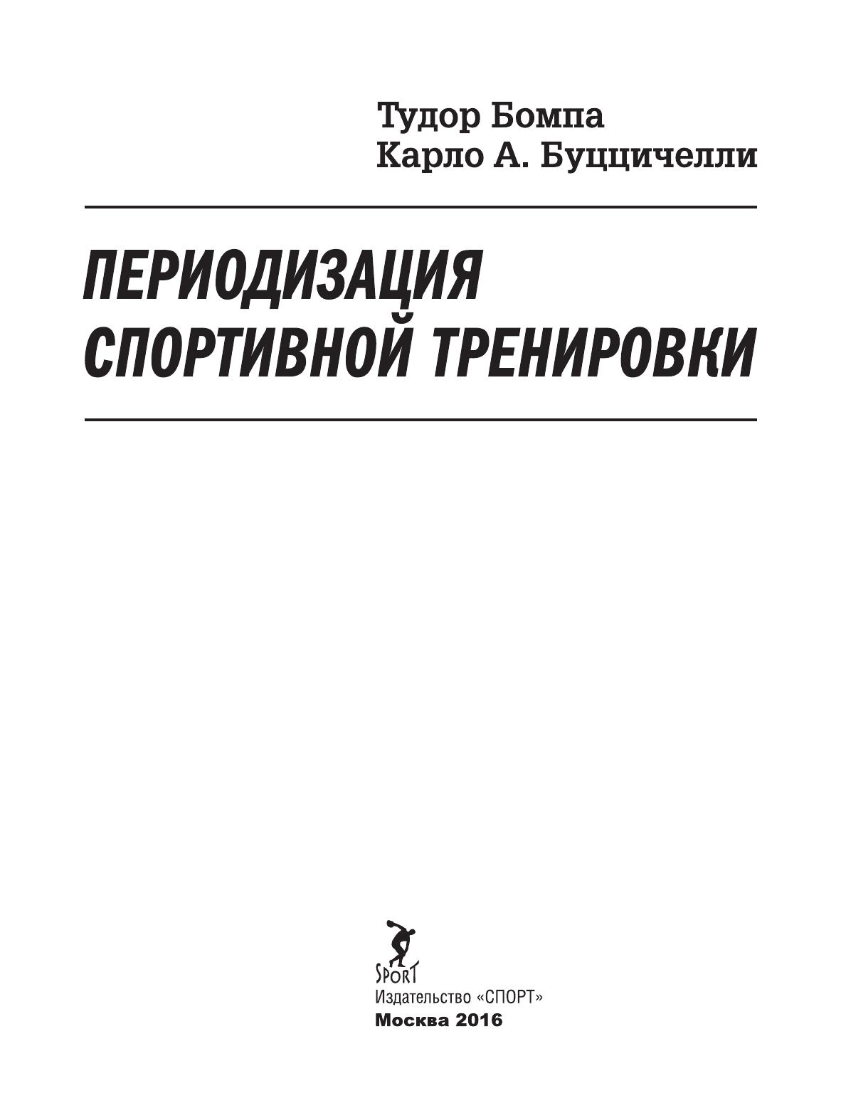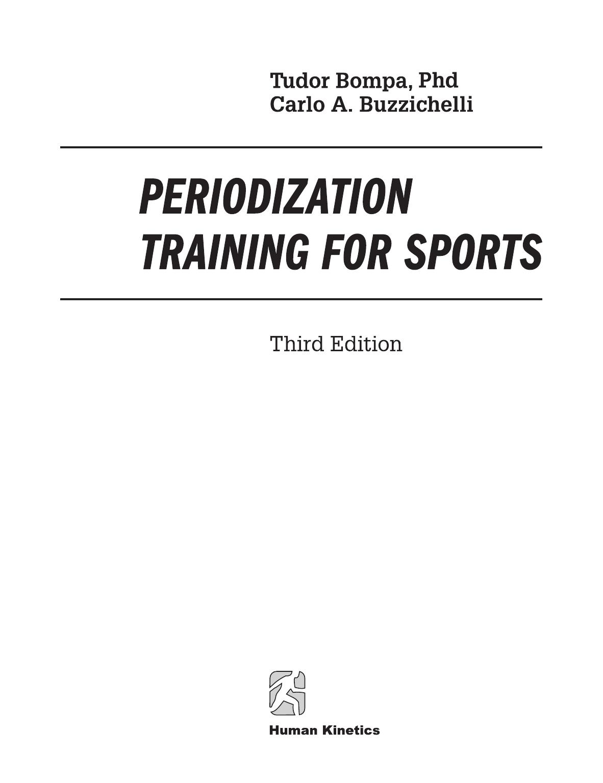 Новое, третье, издание «Периодизации спортивной тренировки», написанное Тудором Бомпой совместно с экспертом по силовому тренингу Карло Буццичелли, включает в себя множество готовых расписаний тренировок. Это лучший способ планировать тренировки, если вы хотите знать, какая методика работает, почему она работает и когда она работает в тренировочном зале и во время соревнований. Тренерам и спортс менам в 35 видах спорта предлагается проверенная программа, которая непременно поможет им достичь наилучших результатов в оптимальный промежуток времени посредством манипуляции силовыми переменными, а также тренировки энергетических систем и режима питания