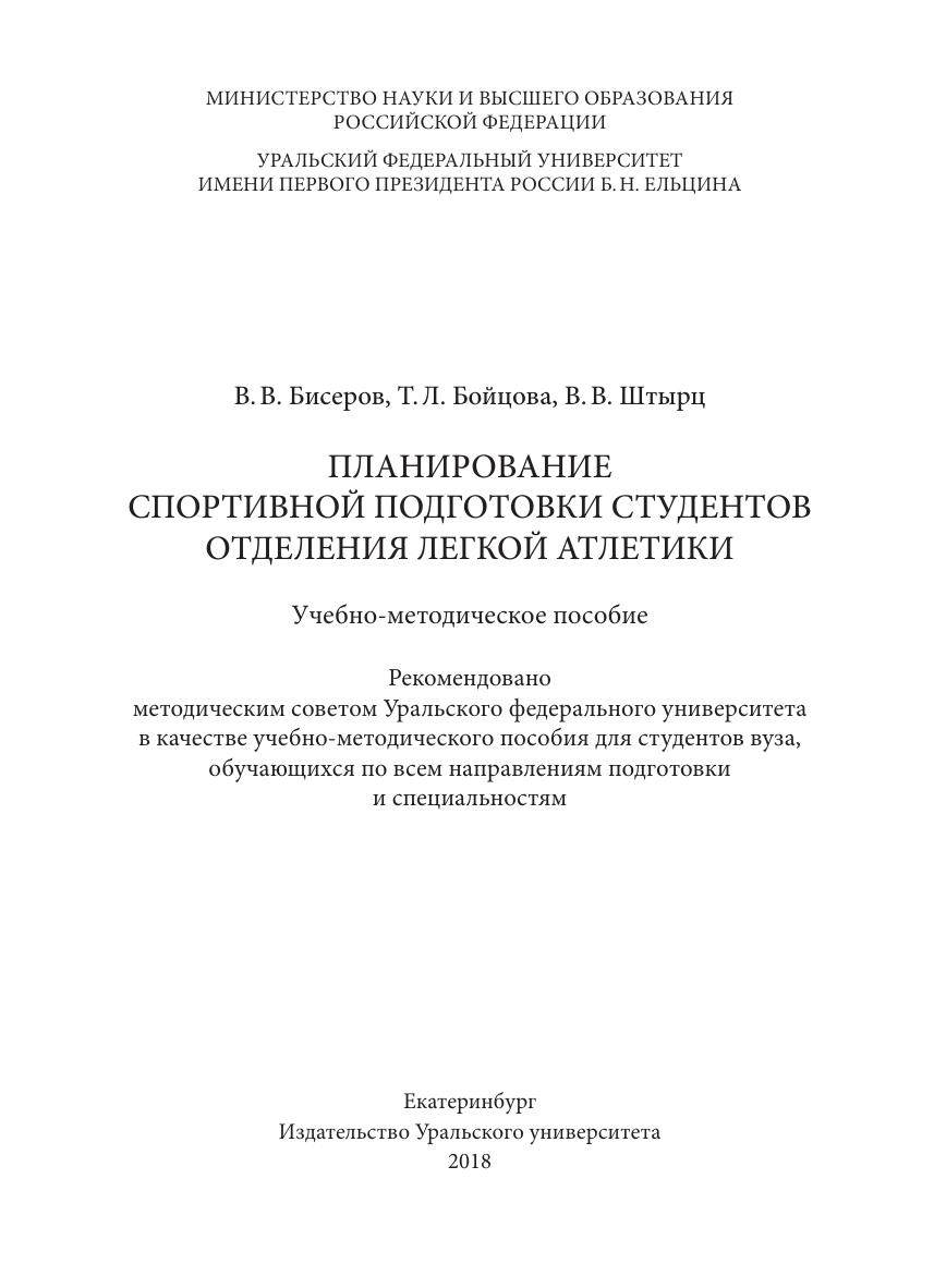 Планирование спортивной подготовки студентов отделения легкой атлетики