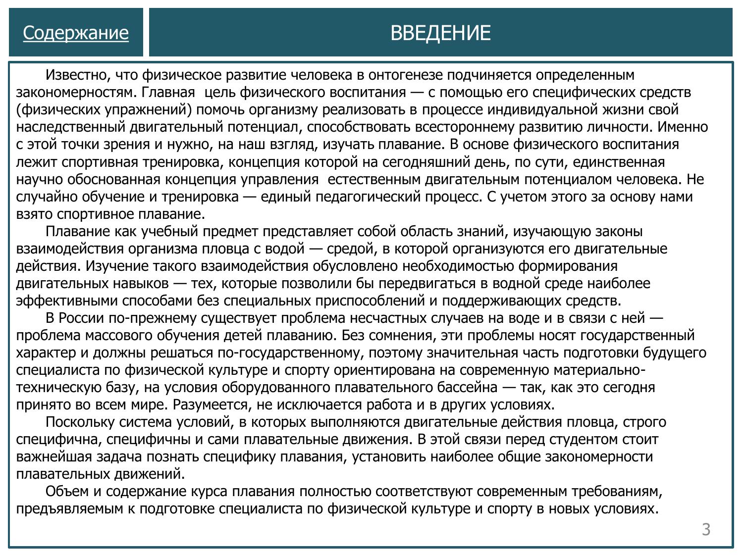 Объем и содержание курса плавания полностью соответствуют современным требованиям, предъявляемым к подготовке специалиста по физической культуре и спорту в новых условиях.