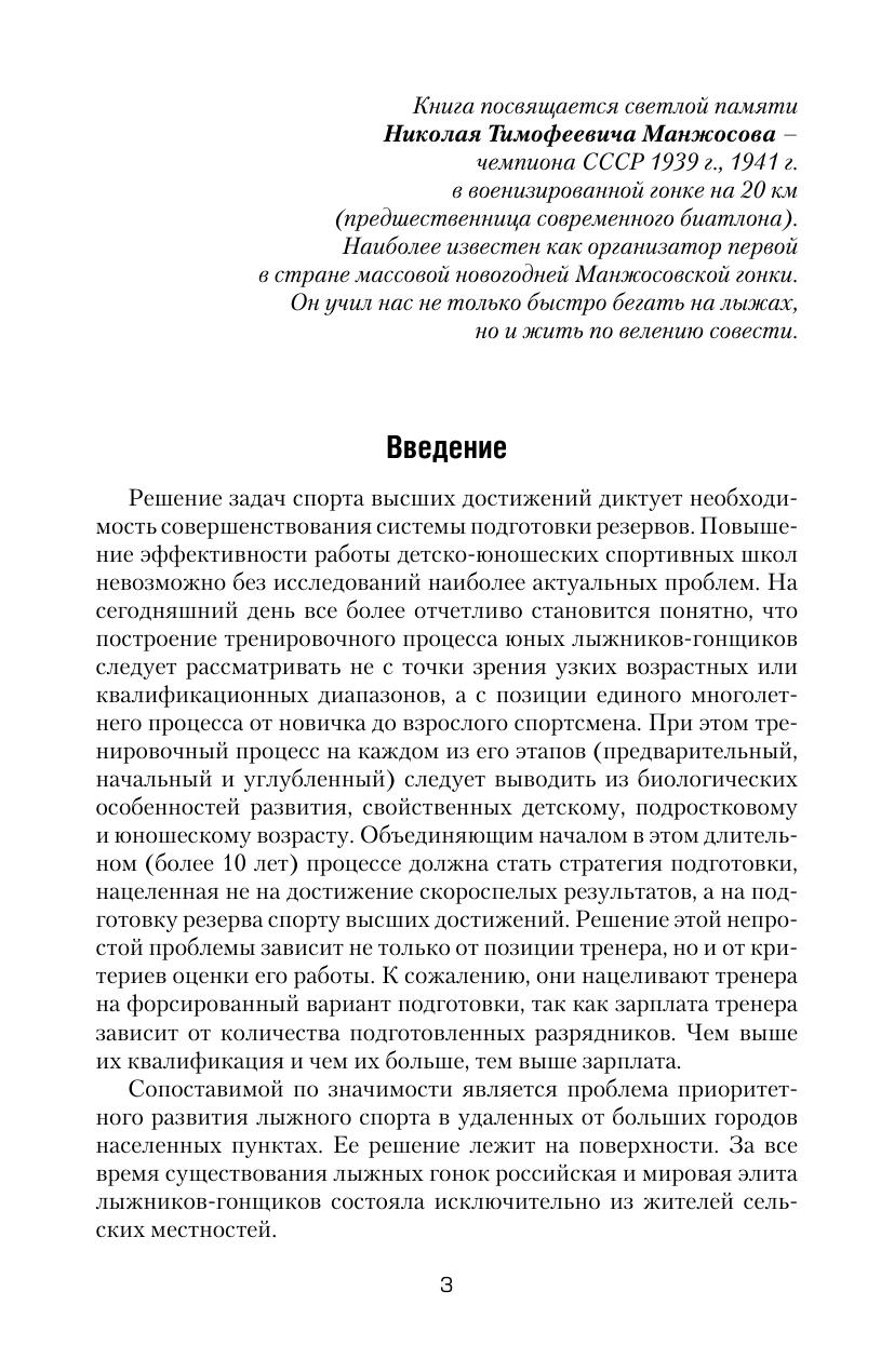 Научно-методическое пособие представляет собой системное изложение практического материала по актуальным проблемам подготовки юных лыжников-гонщиков. В нем впервые показаны некоторые специфические особенности лыжных гонок как вида спорта, обоснована необходимость специализации гонщиков к различным подлине дистанциям и объемы нагрузки для подготовки к каждой из них, рассмотрены проблемы отбора юных лыжников и их подготовка на начальных этапах спортивного совершенствования, раскрыты вопросы контроля, питания, реабилитации, воспитания психических качеств, затронута ключевая проблема подготовки двоеборцев. Издание адресовано тренерам, тренерам-преподавателям, научным работникам, спортсменам.