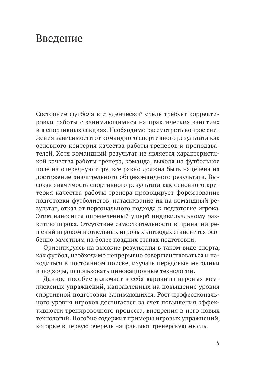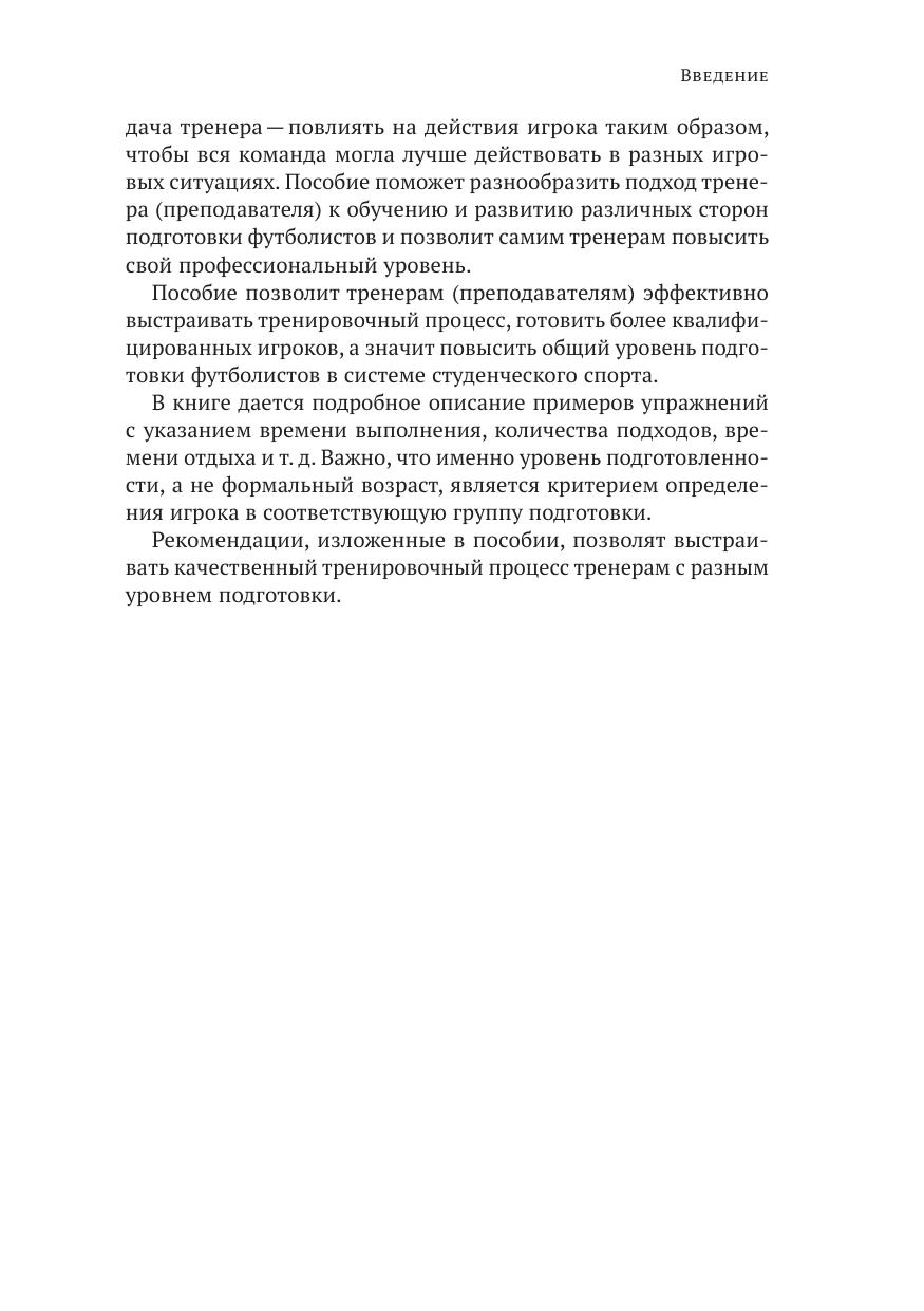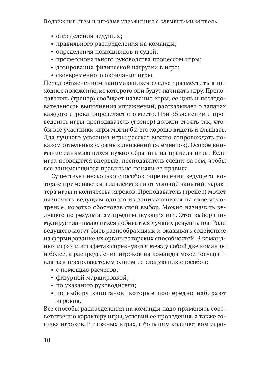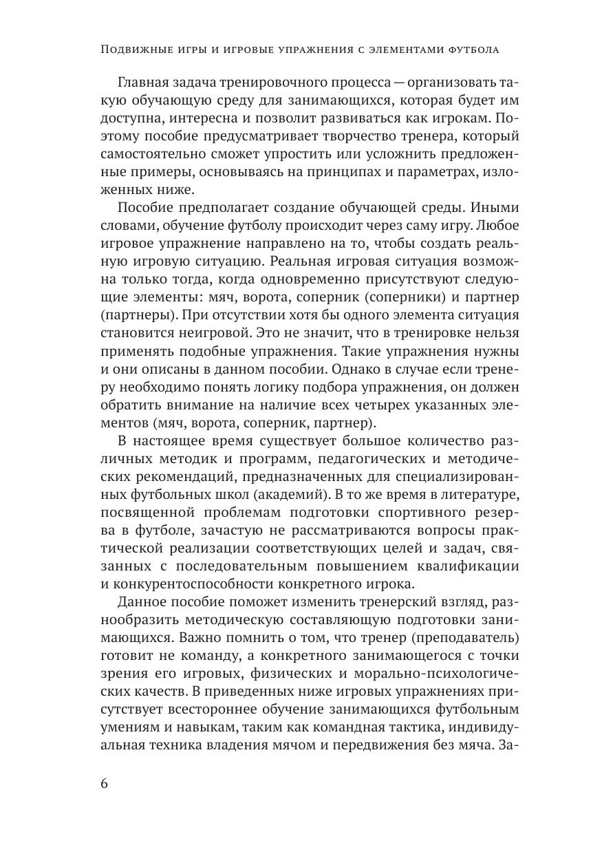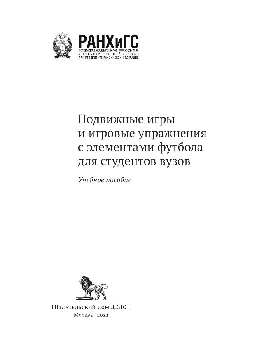 Учебное пособие предназначено для преподавателей вузов, проводящих практические занятия по теме «спортивные игры», а также тренировочные мероприятия по футболу со студентами во внеучебное время. В пособии подробно раскрывается методология организации подвижных игр, подбор и учет их уровня сложности, включая применение и варьирование различных компонентов нагрузки. Представлены практические рекомендации для подготовки и реализации специальных подвижных игр как одного из важнейших средств игровой направленности, применяемых в современной практике подготовки студентов, занимающихся футболом. Пособие направлено на формирование у будущих специалистов государственной службы потребности в систематических занятиях физическими упражнениями, поддержании высокой физической активности и ведении здорового образа жизни. Пособие утверждено учебно-методическим советом Российской академии народного хозяйства и государственной службы при Президенте Российской Федерации.