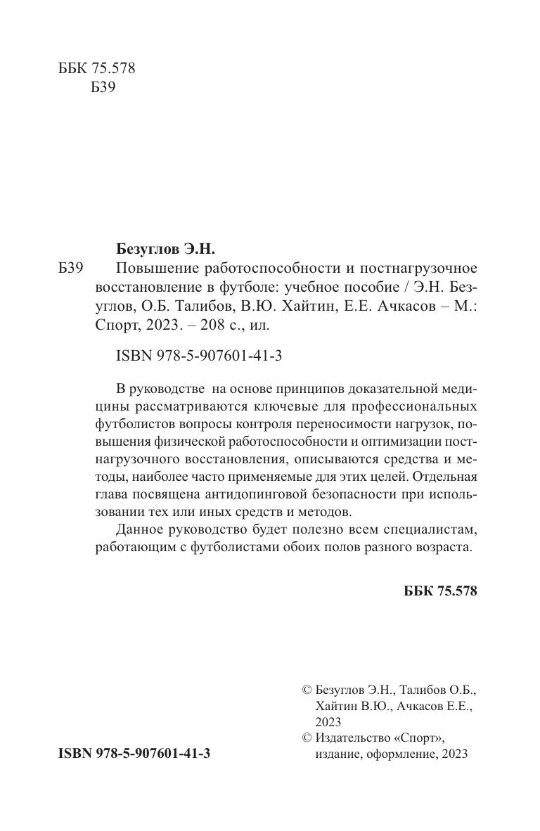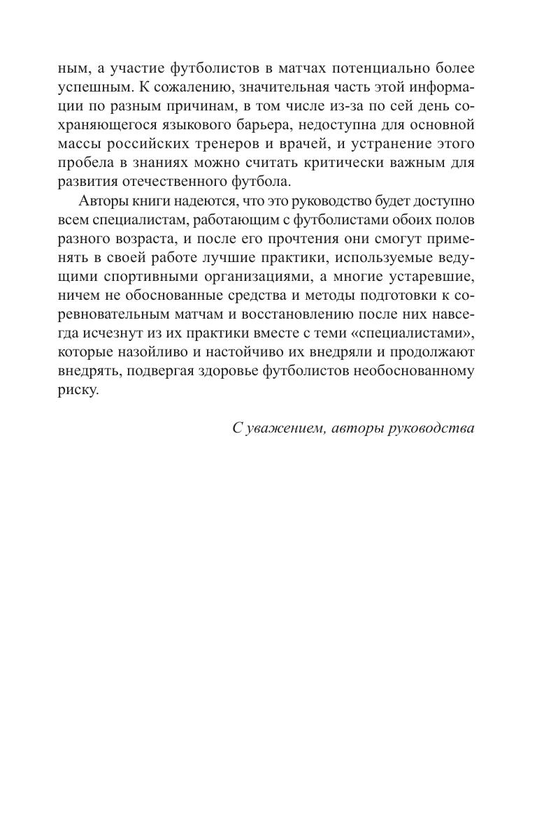 В руководстве на основе принципов доказательной медицины рассматриваются ключевые для профессиональных футболистов вопросы контроля переносимости нагрузок, повышения физической работоспособности и оптимизации постнагрузочного восстановления, описываются средства и методы, наиболее часто применяемые для этих целей. Отдельная глава посвящена антидопинговой безопасности при использовании тех или иных средств и методов. Данное руководство будет полезно всем специалистам, работающим с футболистами обоих полов разного возраста.