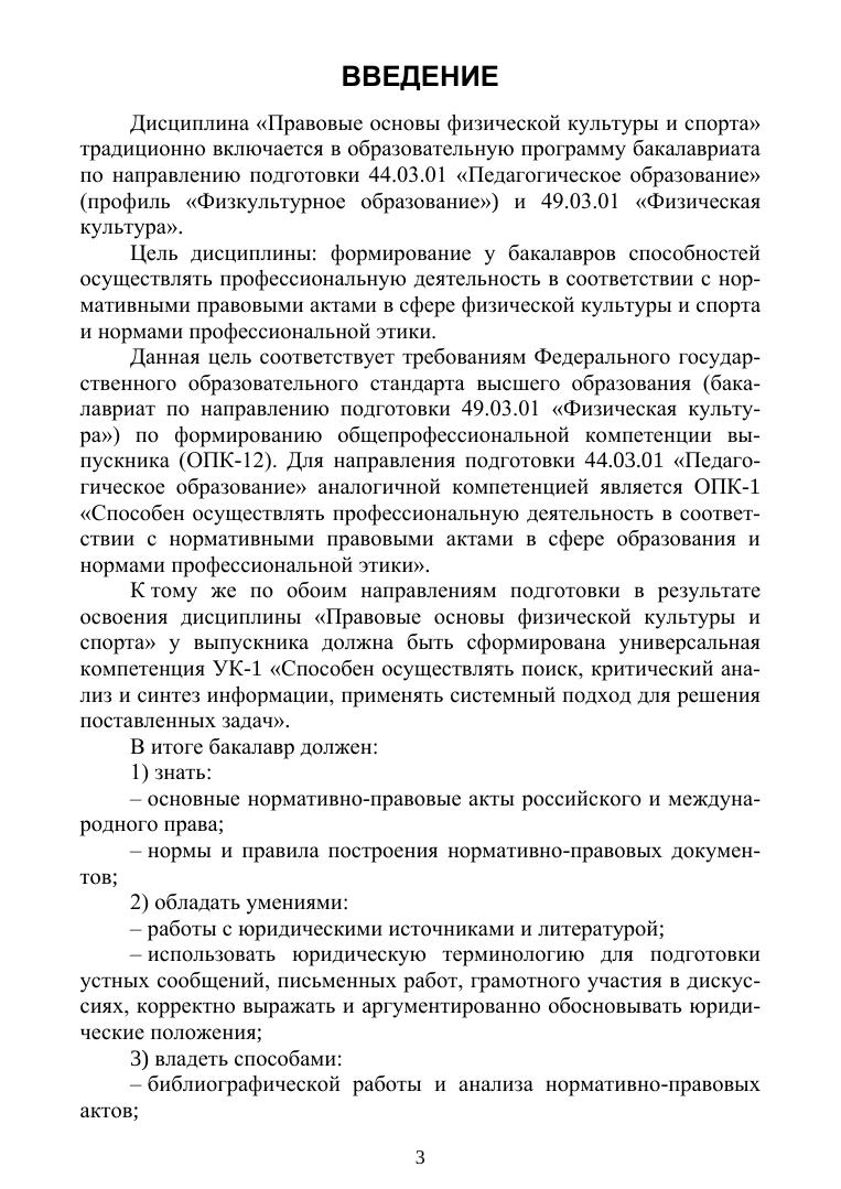 В пособии раскрывается эволюция нормативных основ сферы физической культуры и спорта в России, а также правовые акты международных спортивных организаций. Особенностью пособия является представление учебных материалов в виде информационных таблиц и схем. Издание предназначено студентам высших учебных учреждений, обучающимся по направлениям «Педагогическое образование» (профиль «Физкультурное образование») и «Физическая культура». Пособие может быть использовано в самостоятельной работе и при дистанционной форме обучения.