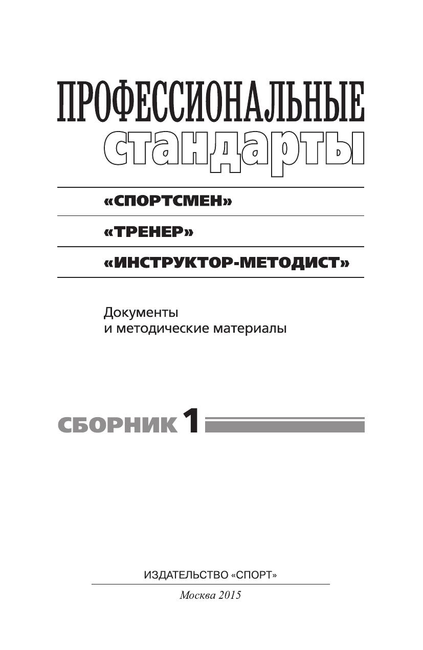 Профессиональные стандарты: Сборник 1: «Спортсмен», «Тренер», «Инструктор-методист»: Документы и методические материалы