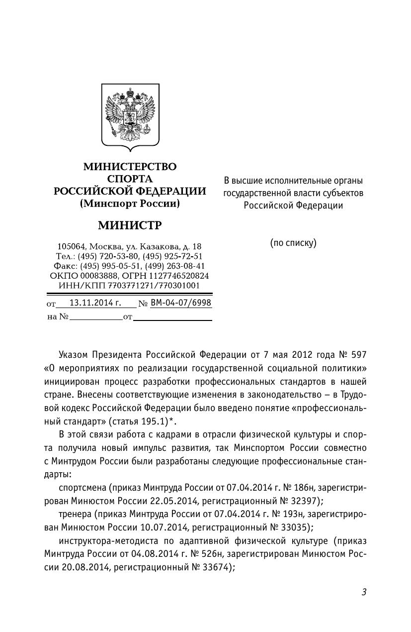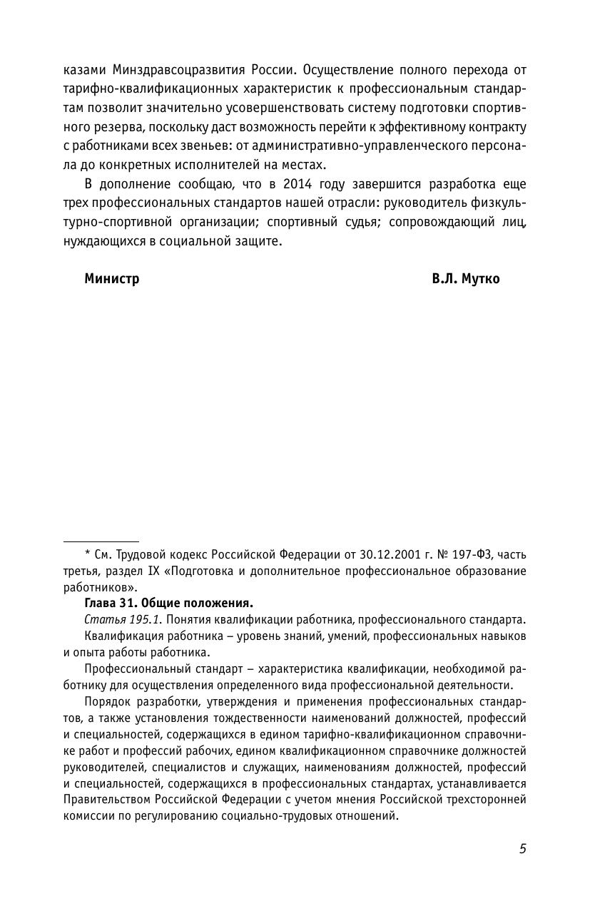 Сборник содержит документы и методические материалы по внедрению в Российской Федерации профессиональных стандартов «Спортсмен», «Тренер», «Инструктор-методист» в целях совершенствования работы с кадрами в отрасли физической культуры и спорта.