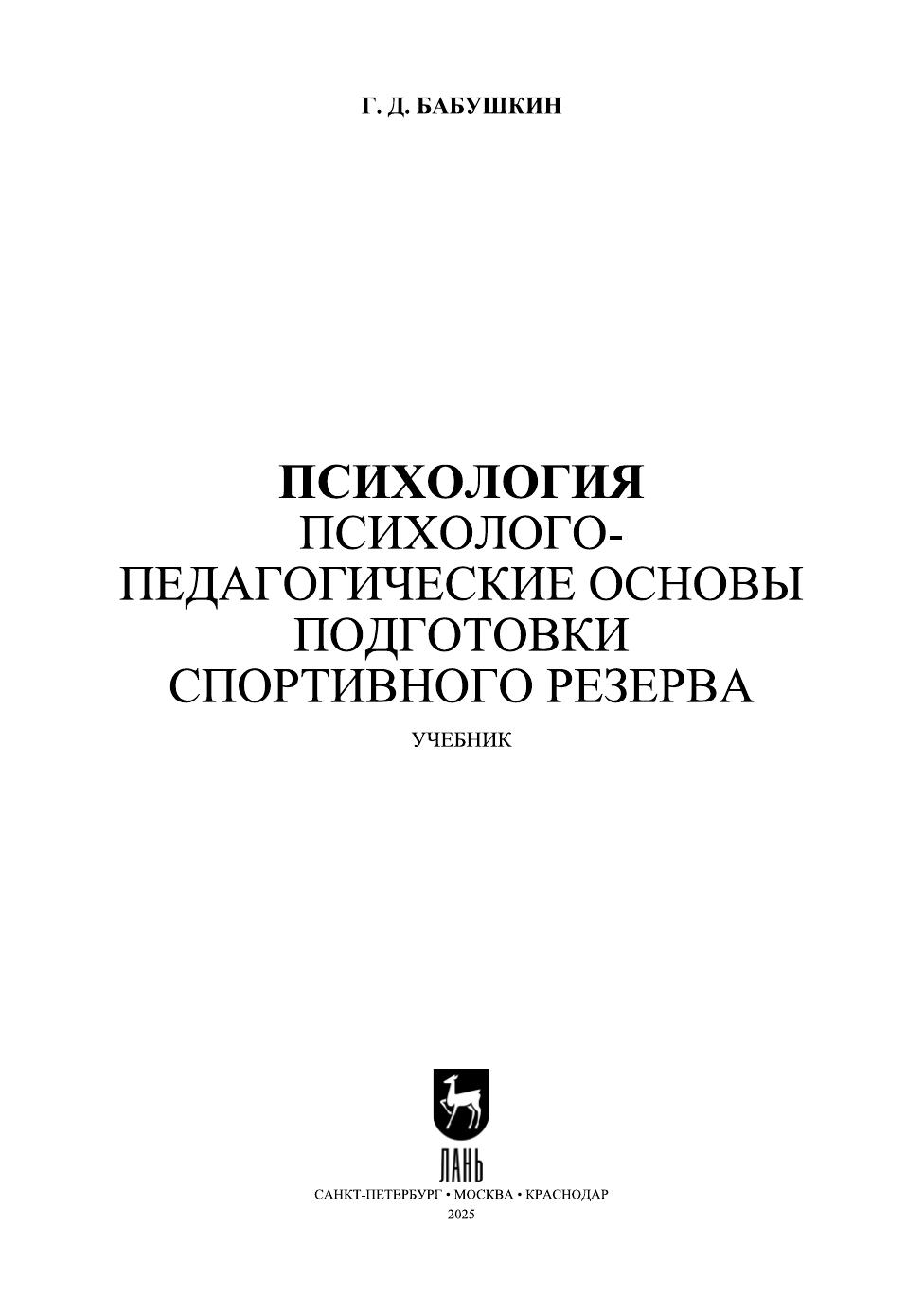 Психология. Психолого-педагогические основы подготовки спортивного резерва