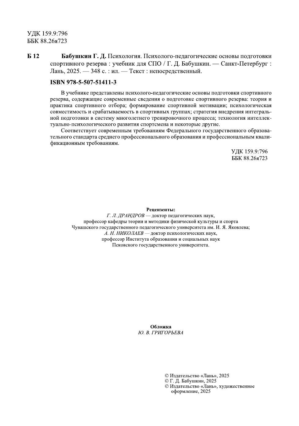 В учебнике представлены психолого-педагогические основы подготовки спортивного резерва, содержащие современные сведения о подготовке спортивного резерва: теория и практика спортивного отбора, формирование спортивной мотивации, психологическая совместимость и срабатываемость в спортивных группах, стратегия внедрения интегральной подготовки в систему многолетнего тренировочного процесса, технология интеллектуально-психологического развития спортсмена и некоторые другие. Соответствует современным требованиям Федерального государственного образовательного стандарта среднего профессионального образования и профессиональным квалификационным требованиям.