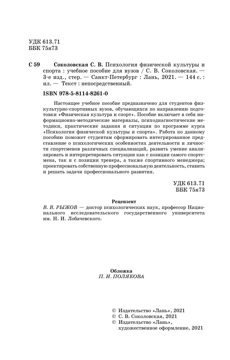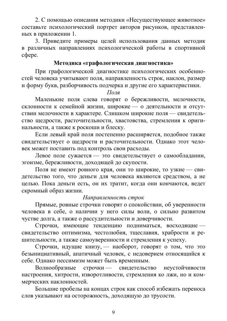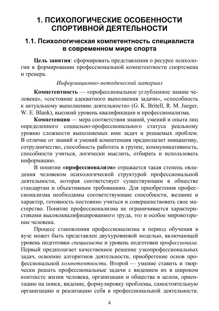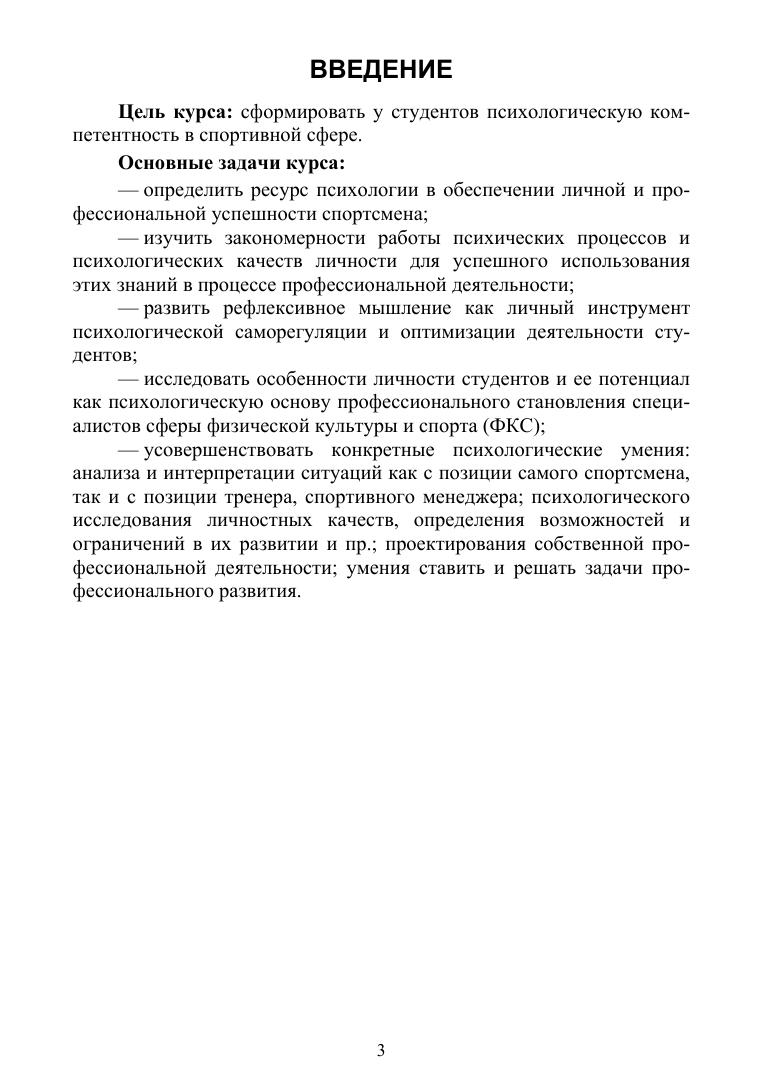 Настоящее учебное пособие предназначено для студентов физкультурно-спортивных вузов, обучающихся по направлению подготовки «Физическая культура и спорт». Пособие включает в себя информационно-методические материалы, психодиагностические методики, практические задания и ситуации по программе курса «Психология физической культуры и спорта». Работа по данному пособию поможет студентам сформировать интегрированное представление о психологических особенностях деятельности и личности спортсменов различных специализаций, развить умение анализировать и интерпретировать ситуации как с позиции самого спортс-мена, так и с позиции тренера, а также спортивного менеджера; проектировать собственную профессиональную деятельность, ставить и решать задачи профессионального развития.