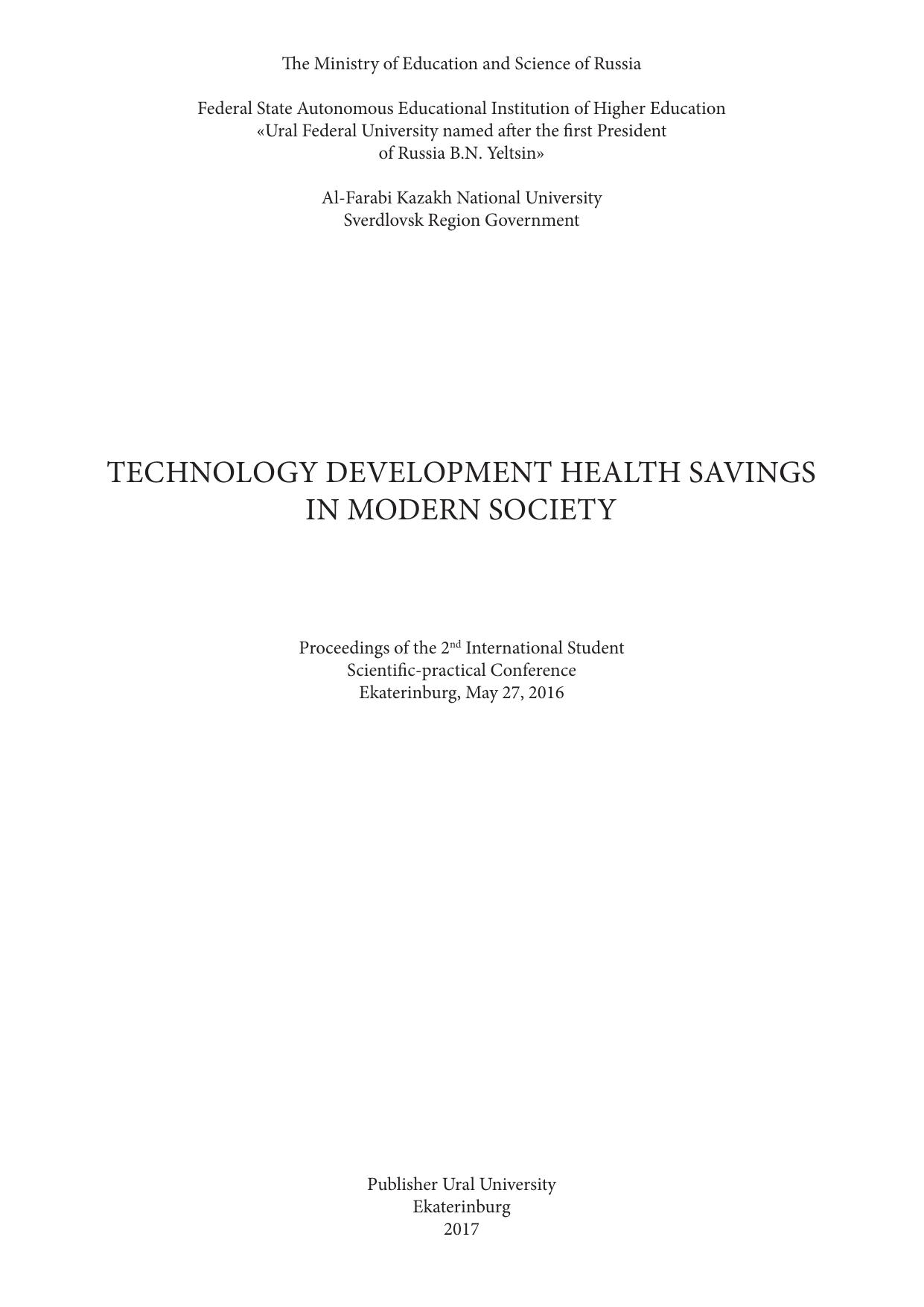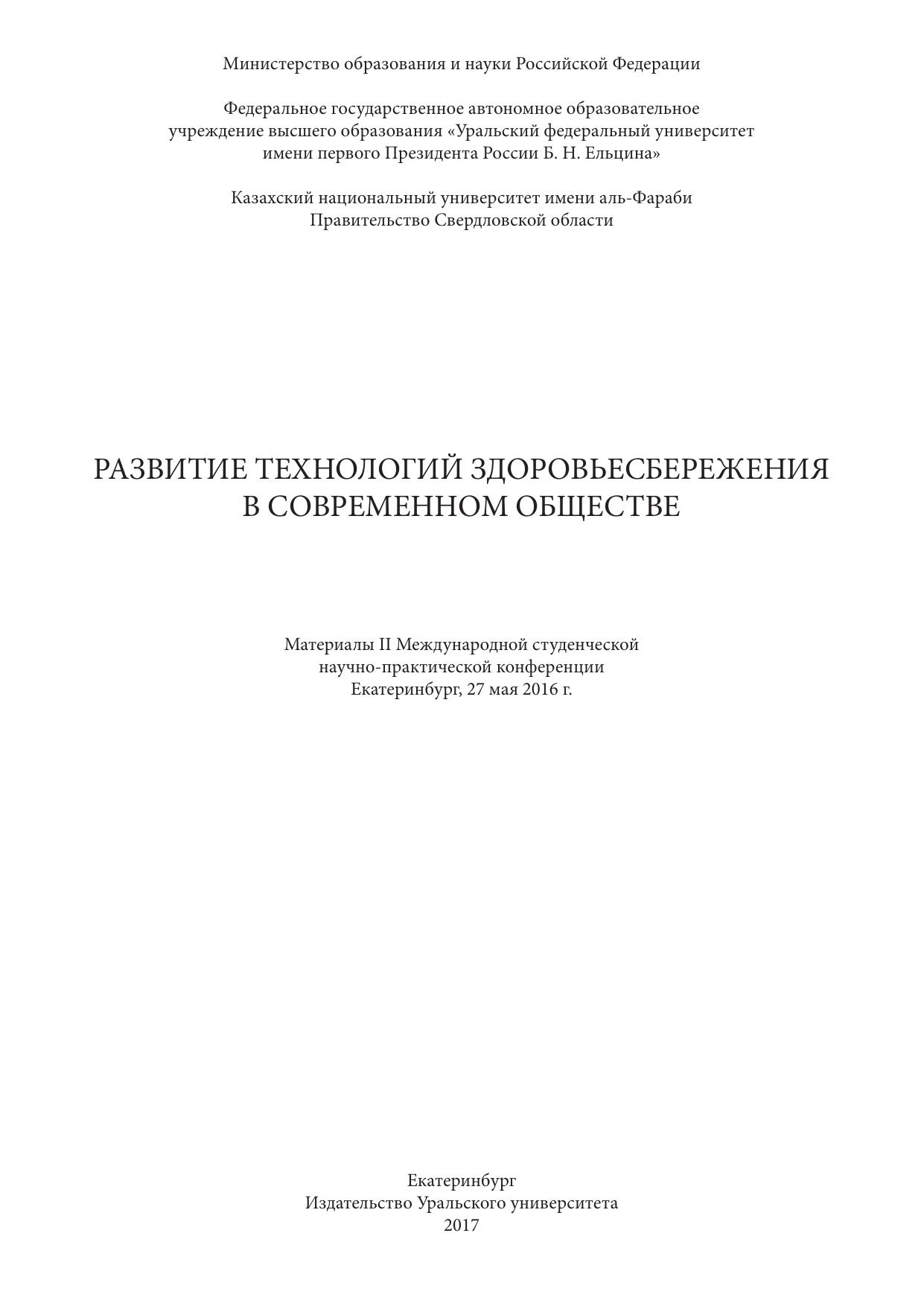 Развитие технологий здоровьесбережения в современном обществе: материалы II Международ. студ. науч.-практ. конф. Екатеринбург, 27 мая 2016 г.