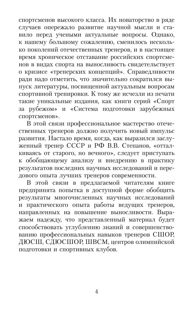 В книге приводятся сведения о факторах, определяющих выносливость, причинах утомления при выполнении различных физических упражнений, способах оценки, средствах и методах развития выносливости, подробно рассматриваются вопросы, связанные с характеристикой и организацией тренировочных нагрузок.