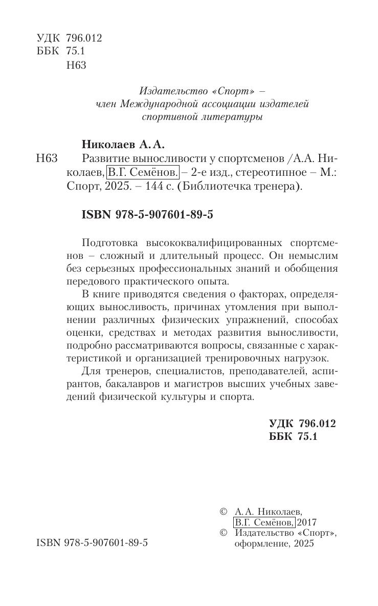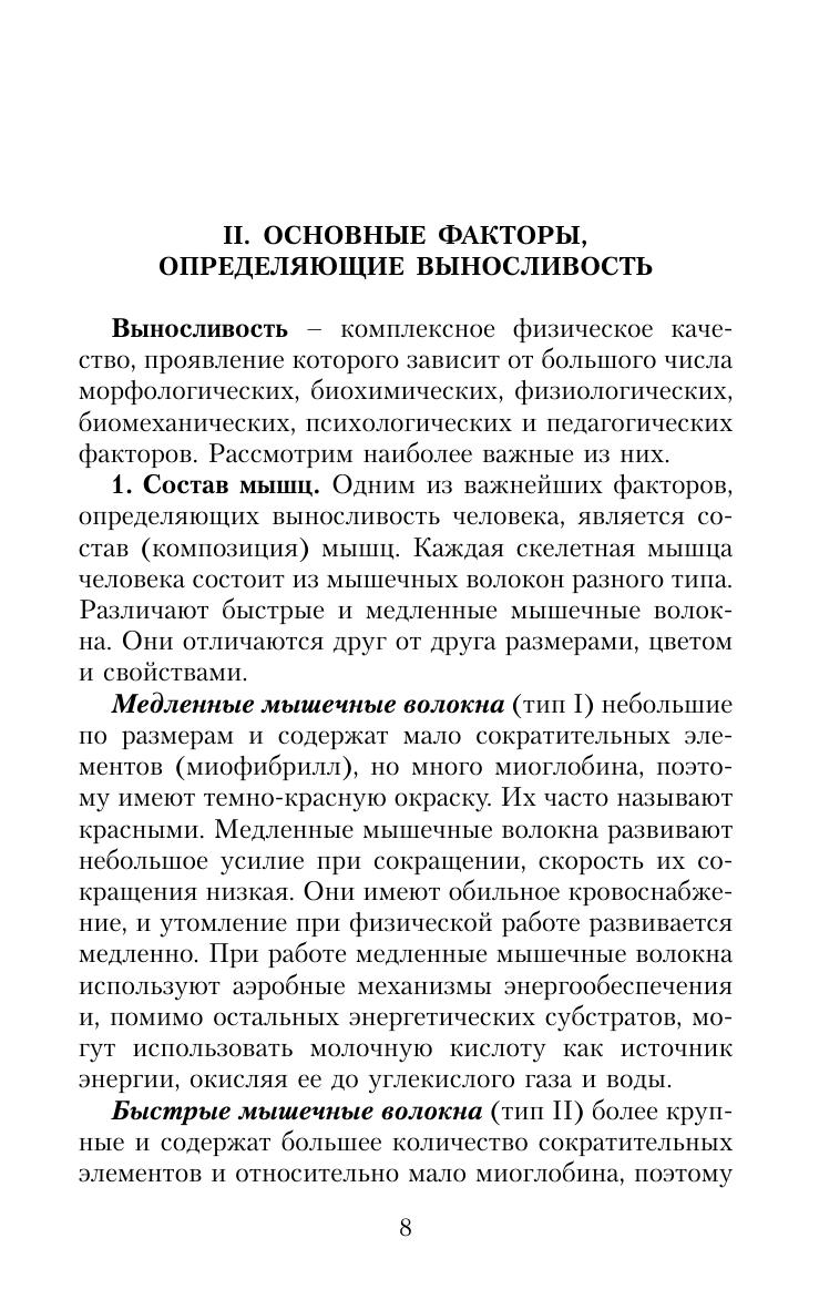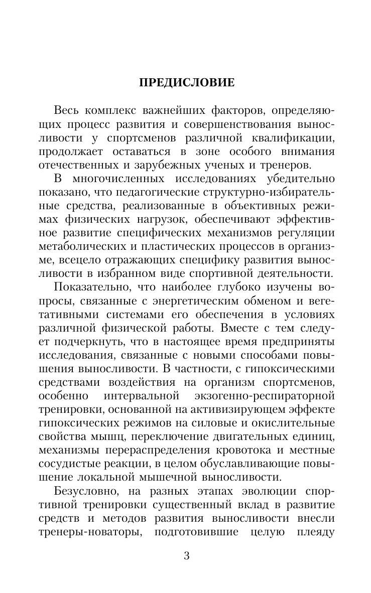 Подготовка высококвалифицированных спортсменов – сложный и длительный процесс. Он немыслим без серьезных профессиональных знаний и обобщения передового практического опыта. В книге приводятся сведения о факторах, определя ющих выносливость, причинах утомления при выпол нении различных физических упражнений, способах оценки, средствах и методах развития выносливости, подробно рассматриваются вопросы, связанные с харак теристикой и организацией тренировочных нагрузок. Для тренеров, специалистов, преподавателей, аспирантов, бакалавров и магистров высших учебных заведений физической культуры и спорта.