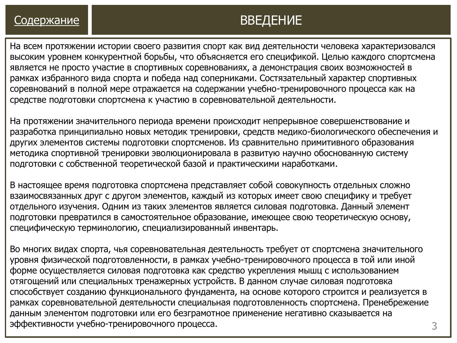 Во многих видах спорта, чья соревновательная деятельность требует от спортсмена значительного уровня физической подготовленности, в рамках учебно-тренировочного процесса в той или иной форме осуществляется силовая подготовка как средство укрепления мышц с использованием отягощений или специальных тренажерных устройств. В данном случае силовая подготовка способствует созданию функционального фундамента, на основе которого строится и реализуется в рамках соревновательной деятельности специальная подготовленность спортсмена. Пренебрежение данным элементом подготовки или его безграмотное применение негативно сказывается на эффективности учебно-тренировочного процесса.