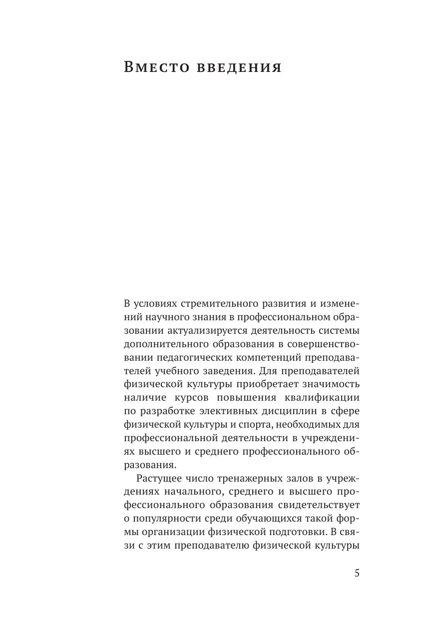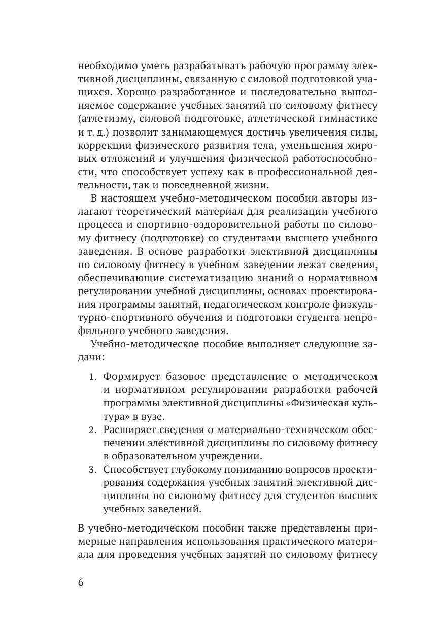 В учебно-методическом пособии представлены теоретико-практические аспекты проектирования элективной дисциплины по физической культуре «Силовой фитнес», организационно-методическое сопровождение написания рабочей программы дисциплины, разработка содержания учебно-тренировочных занятий силовым фитнесом в тренажерном зале для студентов в высшем учебном заведении. Издание адресовано преподавателям физической культуры непрофильных профессиональных учебных заведений, студентам спортивных вузов, интересующимся вопросами учебной работой в тренажерном зале учебных заведений.