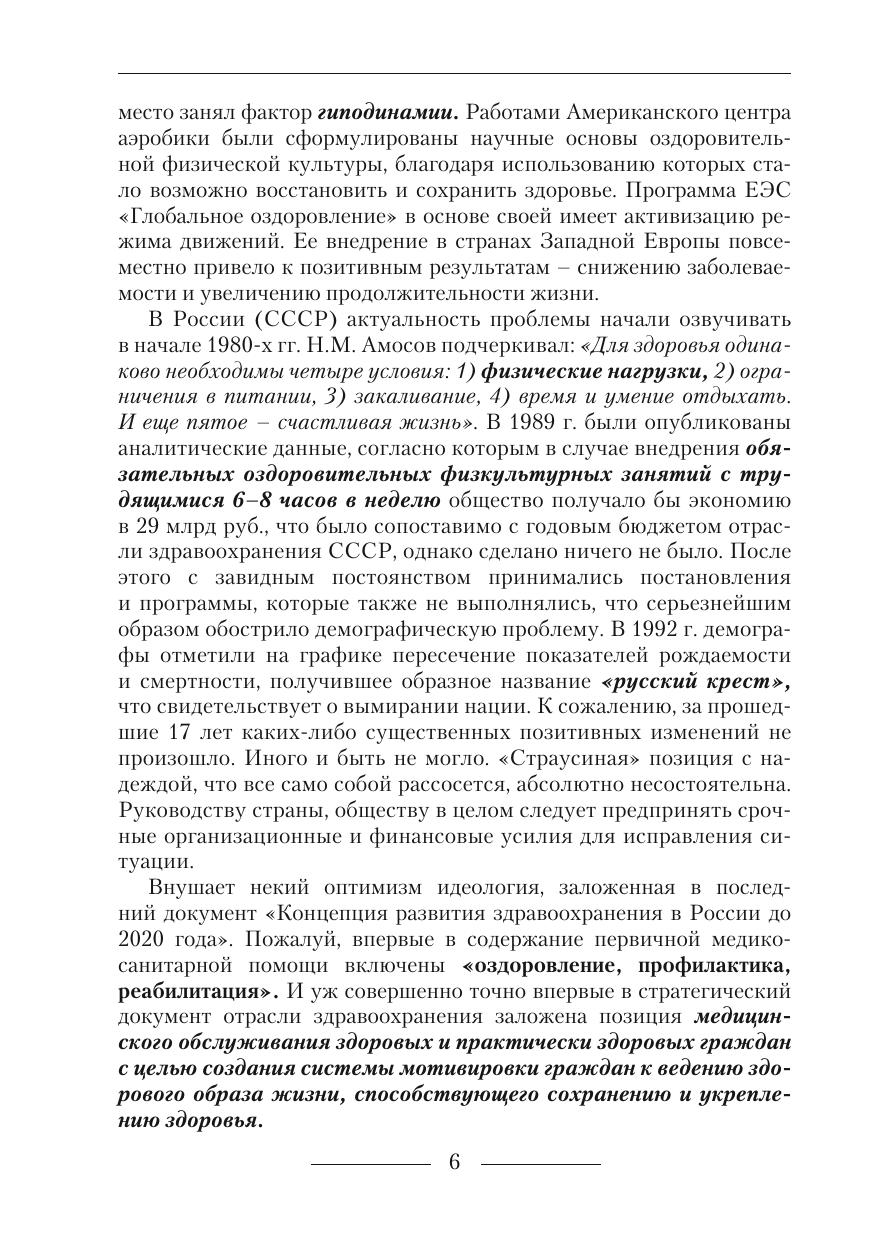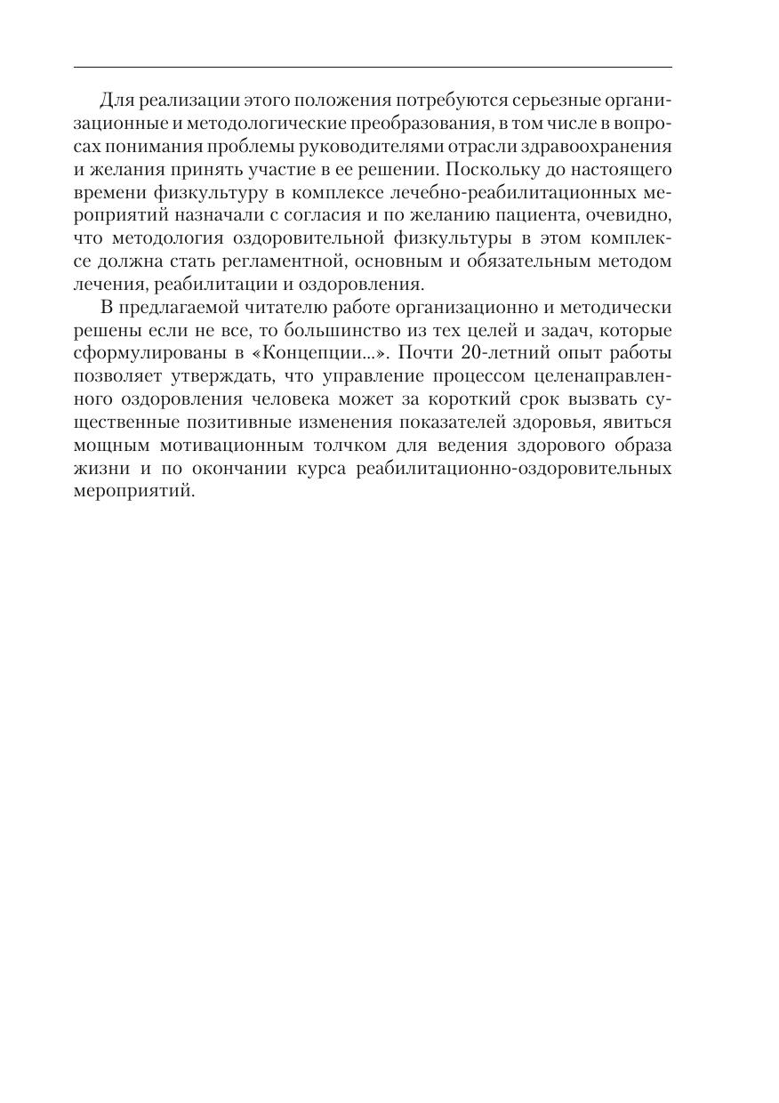 В книге обобщен многолетний опыт работы по созданию на основе общепринятых диагностических приемов, разрешенных к применению на территории Российской Федерации, оригинальной организационной системы целенаправленного оздоровления пациентов и управления процессом оздоровления в оздоровительных центрах, а также на этапах медицинской реабилитации. Соответствует современным требованиям Федерального государственного образовательного стандарта среднего профессионального образования и профессиональным квалификационным требованиям. Издание предназначено для студентов учебных учреждений среднего профессионального образования, а также для специалистов по восстановительной медицине, ЛФК и СМ, центров восстановительной медицины, подразделений врачебно-физкультурной службы (врачебно-физкультурных диспансеров, центров лечебной физкультуры и спортивной медицины, центров медицинской профилактики), санаторно-курортных подразделений, рекреационных учреждений, оздоровительных (фитнес-, велнес-) центров и иных подразделений восстановительной медицины.