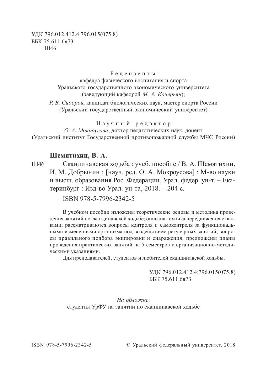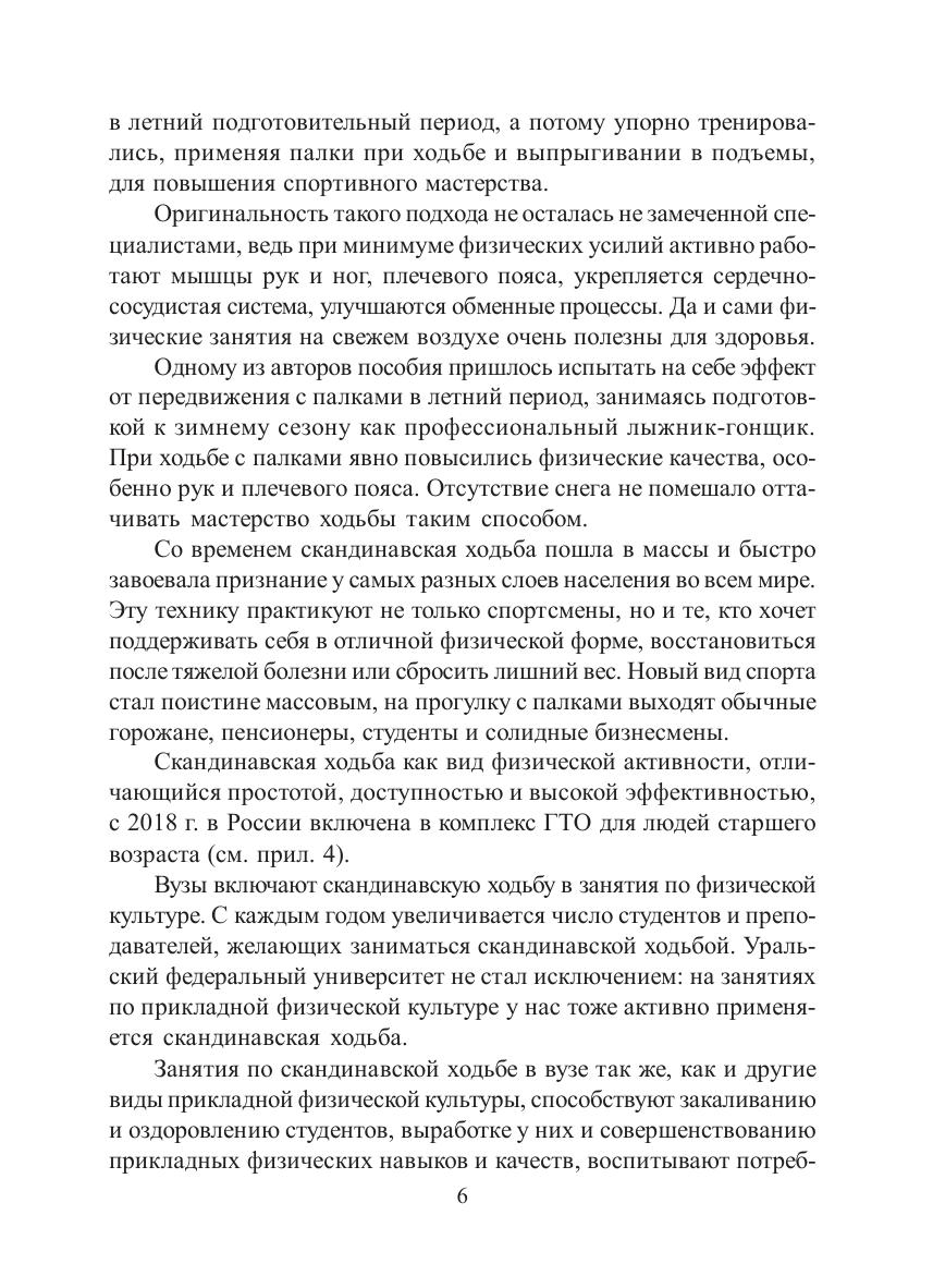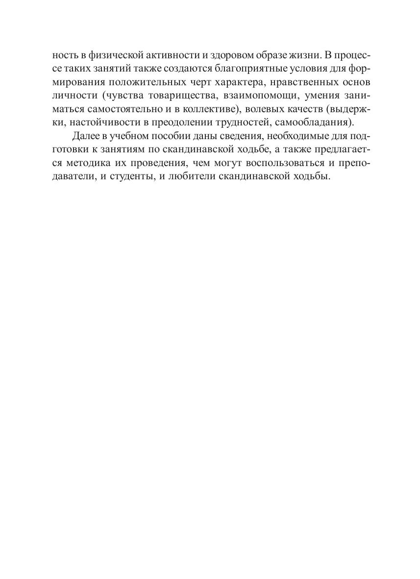 В учебном пособии изложены теоретические основы и методика проведения занятий по скандинавской ходьбе; описана техника передвижения с палками; рассматриваются вопросы контроля и самоконтроля за функциональными изменениями организма под воздействием регулярных занятий; вопросы правильного подбора экипировки и снаряжения; предложены планы проведения практических занятий на 5 семестров с организационно-методическими указаниями. Для преподавателей, студентов и любителей скандинавской ходьбы.