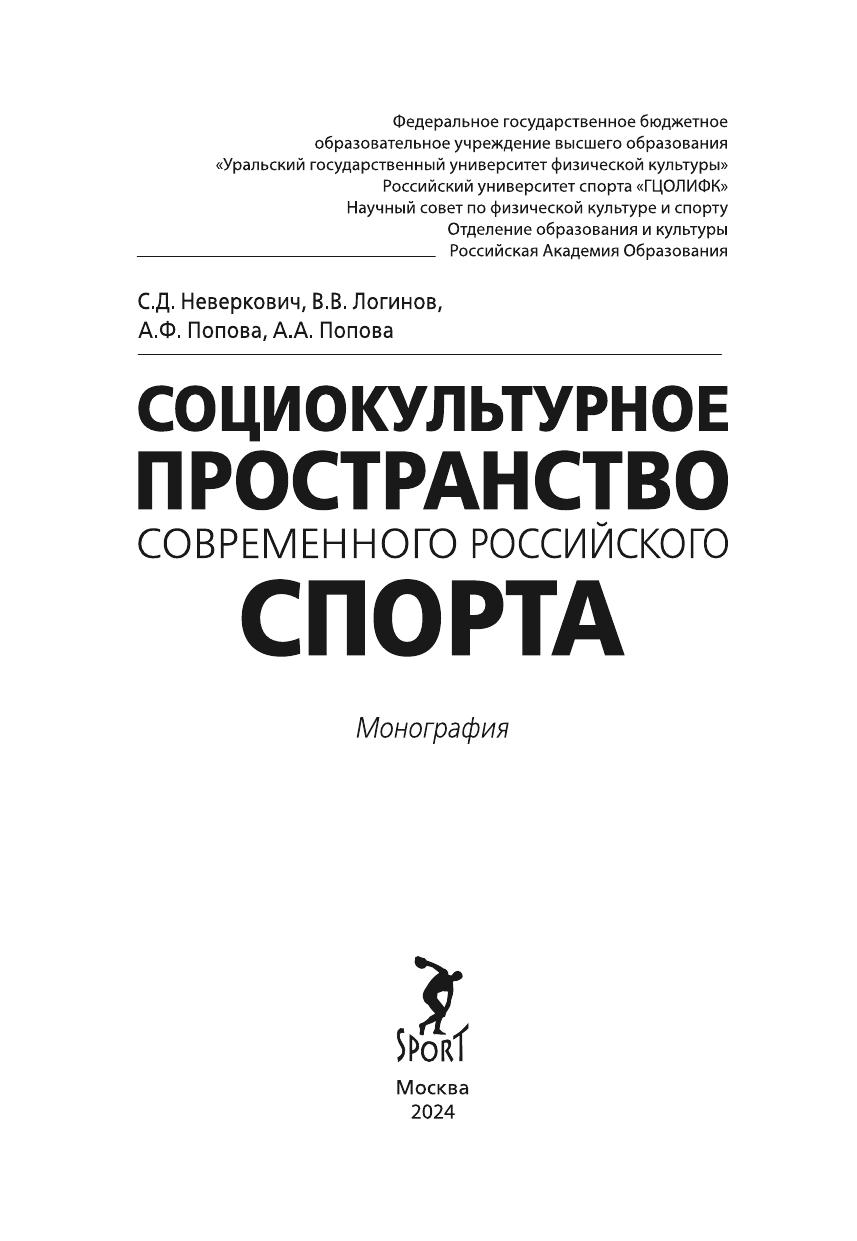 Монография адресована аспирантам, студентам и преподавателям вузов физической культуры. Может быть полезна тем, кто интересуется вопросами оценки социокультурного пространства современного