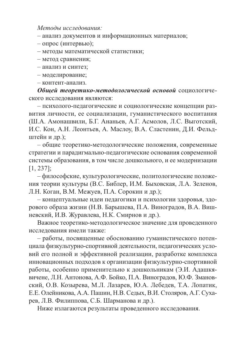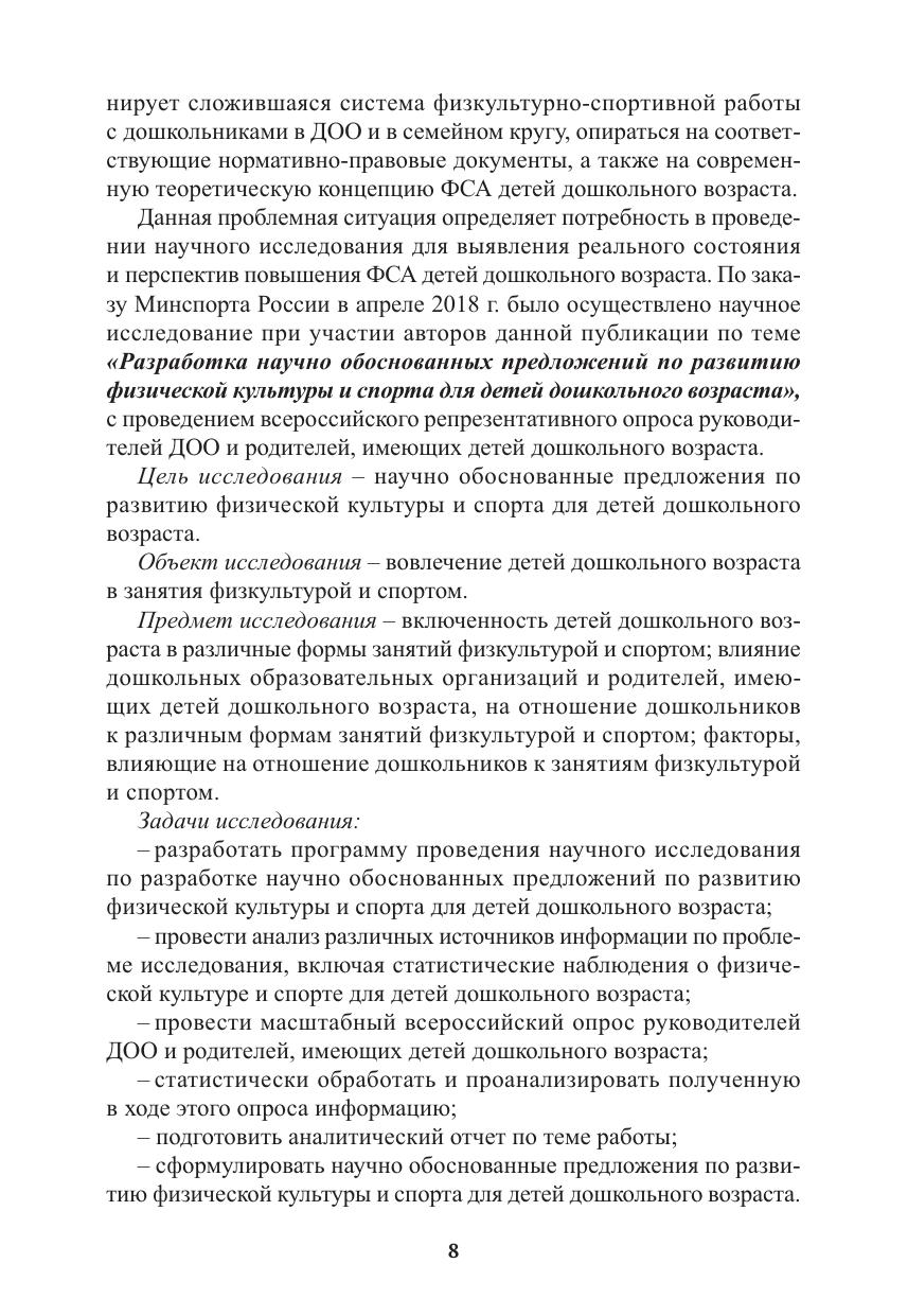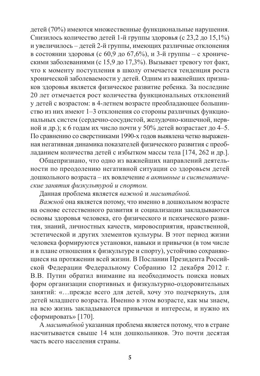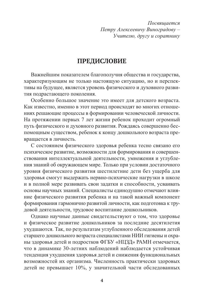 В книге впервые дается целостный анализ комплекса современных проблем физкультурно-спортивной активности детей дошкольного возраста в дошкольных образовательных организациях и в семейных условиях. Раскрываются теоретико методологические, научнометодические и нормативно-правовые основы постановки и решения данных проблем: приводится научно обоснованная информация, полученная на основе проведенного в 2018 г. масштабного всероссийского социологического опроса руководителей дошкольных образовательных организаций и родителей, имеющих детей дошкольного возраста. На основе теоретического и конкретно-социологического анализа формулируются научно обоснованные предложения по совершенствованию физкультурно-спортивной работы с детьми дошкольного возраста. Для работников сферы образования, руководителей, инструкторов по физической культуре дошкольных образовательных организаций, специалистов физической культуры, научных работников, родителей дошкольников.