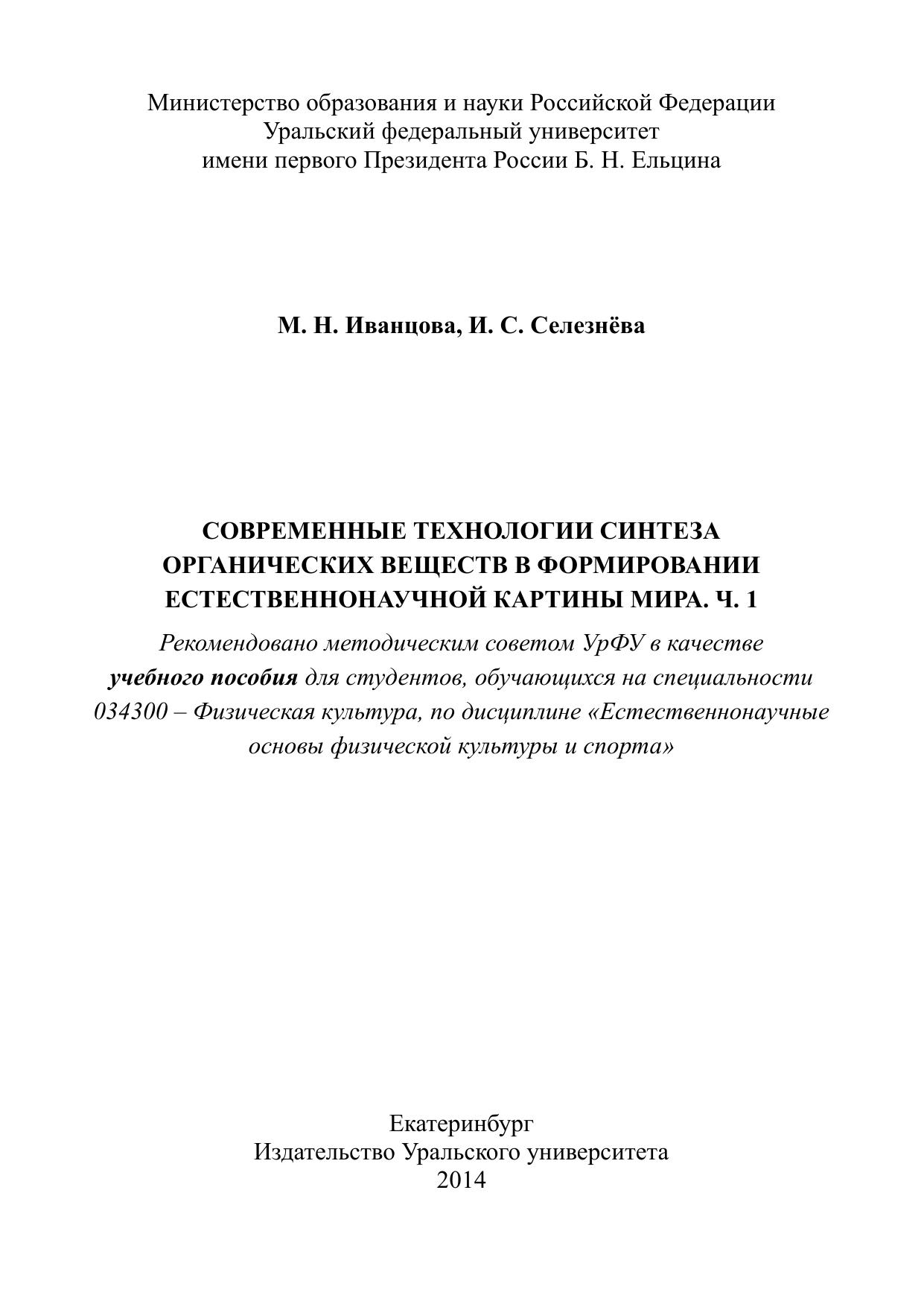 Современные технологии синтеза органических веществ в формировании естественнонаучной картины мира. Ч. 1: учебное пособие