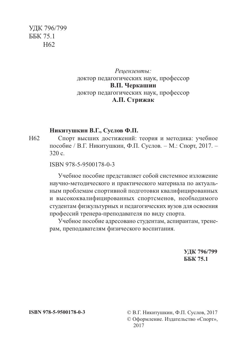 Учебное пособие представляет собой системное изложение научно-методического и практического материала по актуальным проблемам спортивной подготовки квалифицированных и высококвалифицированных спортсменов, необходимого студентам физкультурных и педагогических вузов для освоения профессий тренера-преподавателя по виду спорта. Учебное пособие адресовано студентам, аспирантам, тренерам, преподавателям физического воспитания.