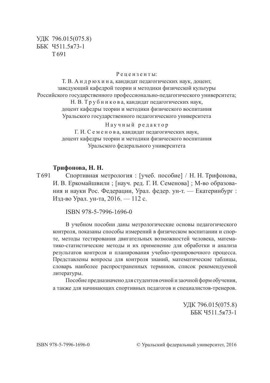 В учебном пособии даны метрологические основы педагогического контроля, показаны способы измерений в физическом воспитании и спорте, методы тестирования двигательных возможностей человека, математико-статистические методы и их применение для обработки и анализа результатов контроля и планирования учебно-тренировочного процесса. Представлены вопросы для контроля знаний, математические таблицы, словарь наиболее распространенных терминов, список рекомендуемой литературы. Пособие предназначено для студентов очной и заочной форм обучения, а также для начинающих спортивных педагогов и специалистов-тренеров.