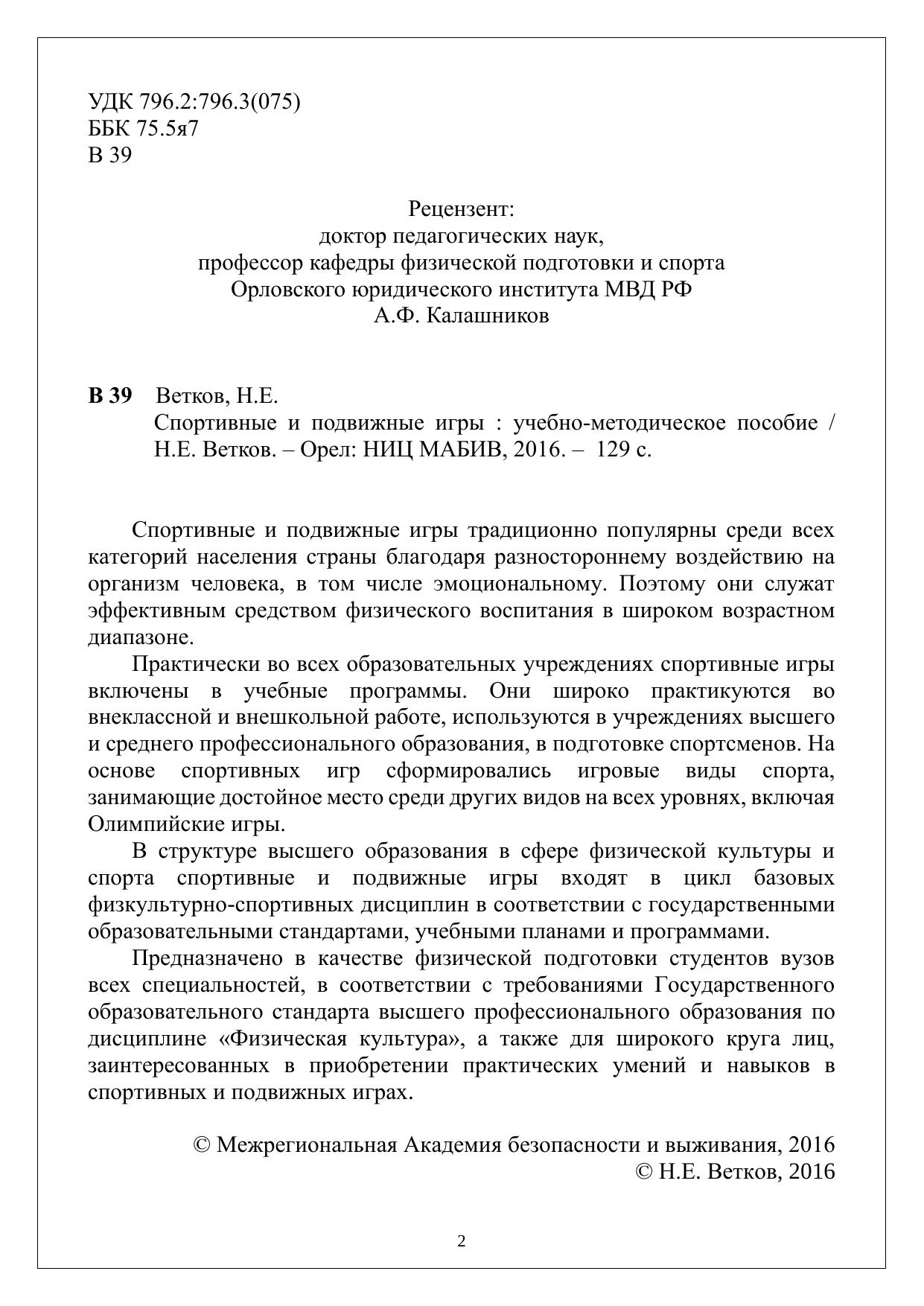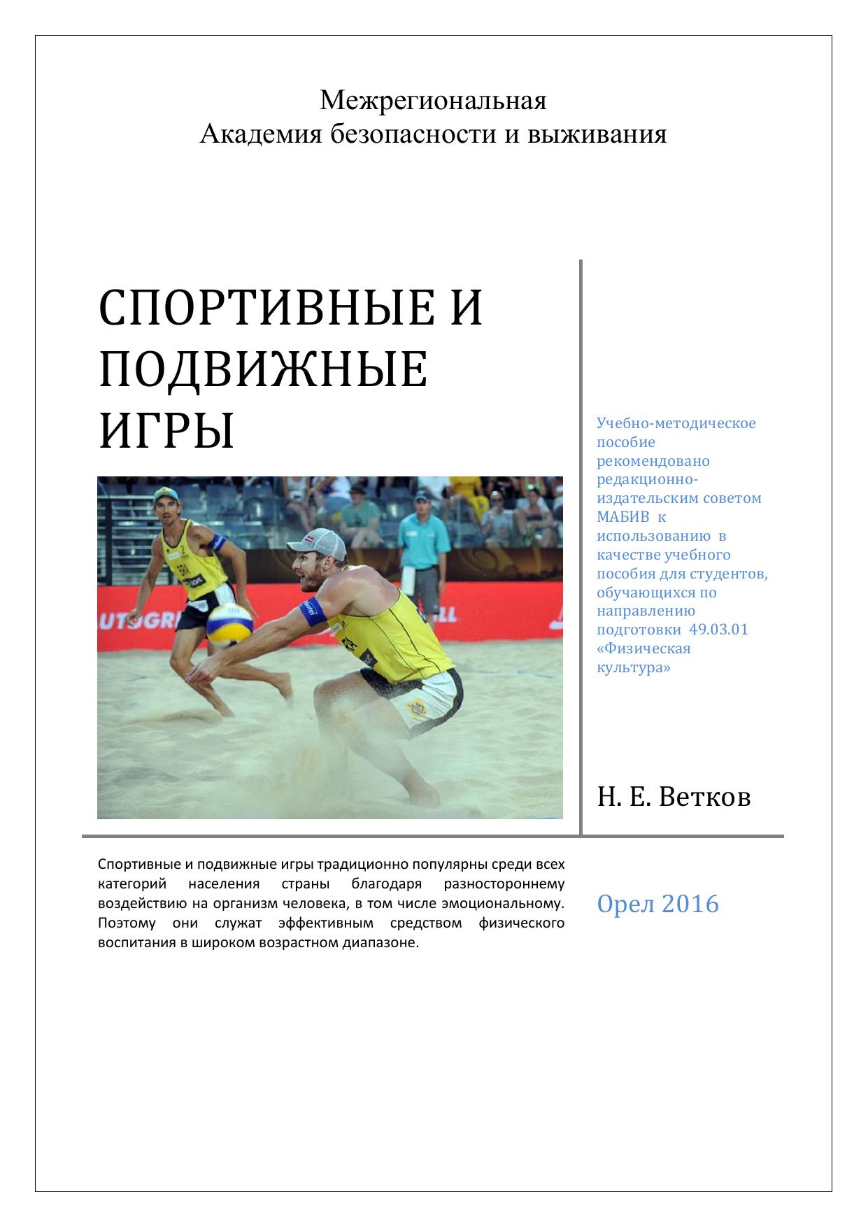 Предназначено в качестве физической подготовки студентов вузов всех специальностей, в соответствии с требованиями Государственного образовательного стандарта высшего профессионального образования по дисциплине «Физическая культура», а также для широкого круга лиц, заинтересованных в приобретении практических умений и навыков в спортивных и подвижных играх.