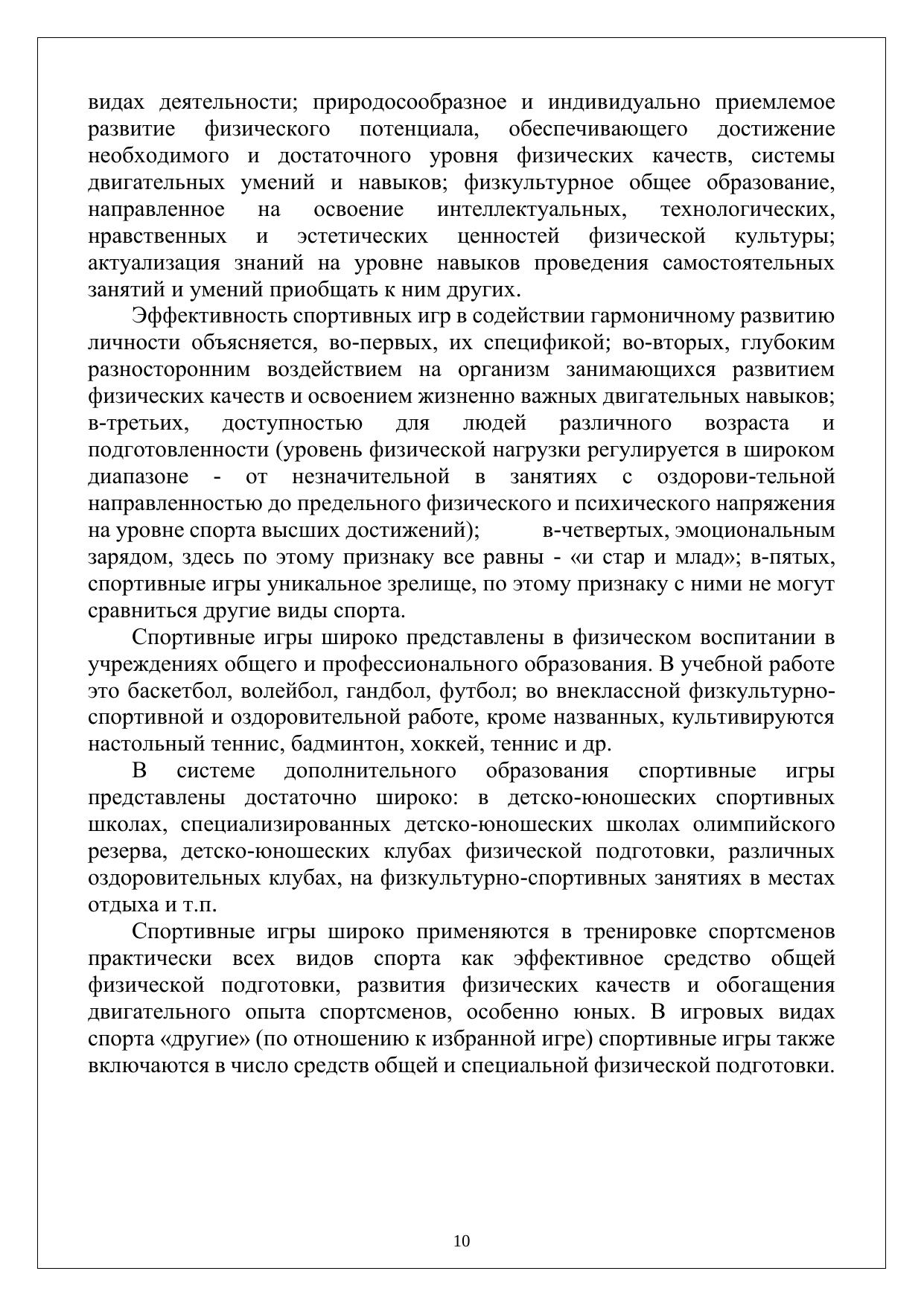 В структуре высшего образования в сфере физической культуры и спорта спортивные и подвижные игры входят в цикл базовых физкультурно-спортивных дисциплин в соответствии с государственными образовательными стандартами, учебными планами и программами.