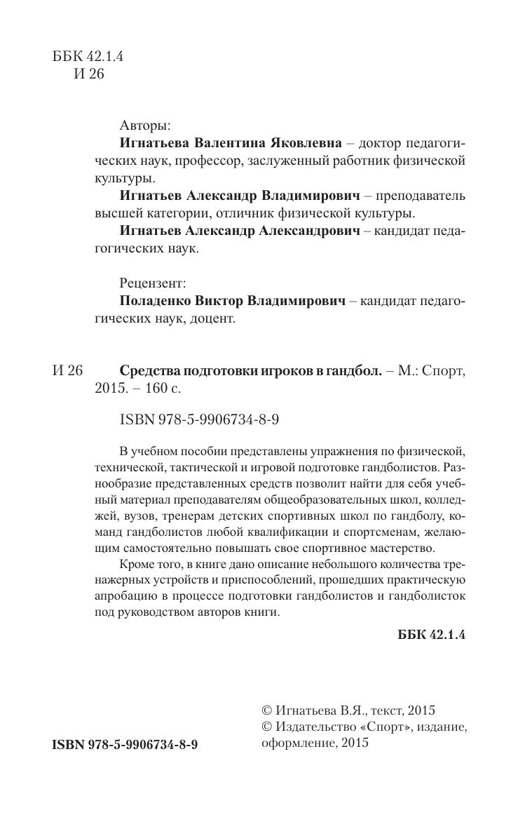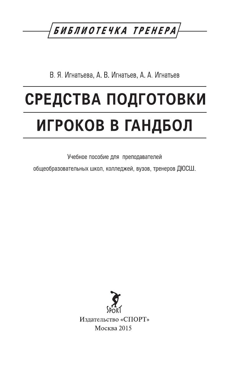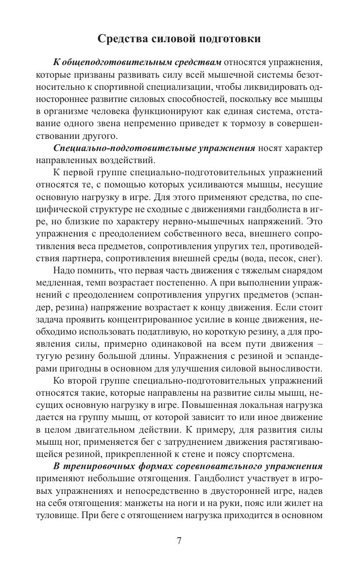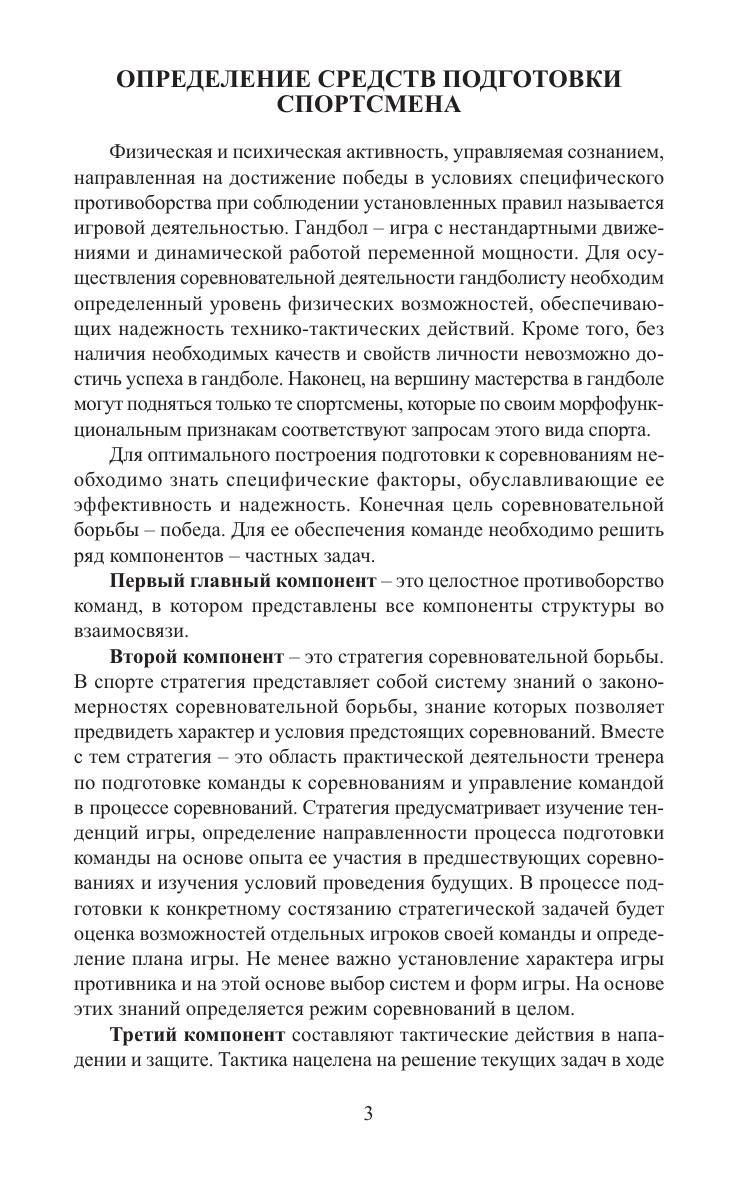 В учебном пособии представлены упражнения по физической, технической, тактической и игровой подготовке гандболистов. Разнообразие представленных средств позволит найти для себя учебный материал преподавателям общеобразовательных школ, колледжей, вузов, тренерам детских спортивных школ по гандболу, команд гандболистов любой квалификации и спортсменам, желающим самостоятельно повышать свое спортивное мастерство. Кроме того, в книге дано описание небольшого количества тренажерных устройств и приспособлений, прошедших практическую апробацию в процессе подготовки гандболистов и гандболисток под руководством авторов книги.