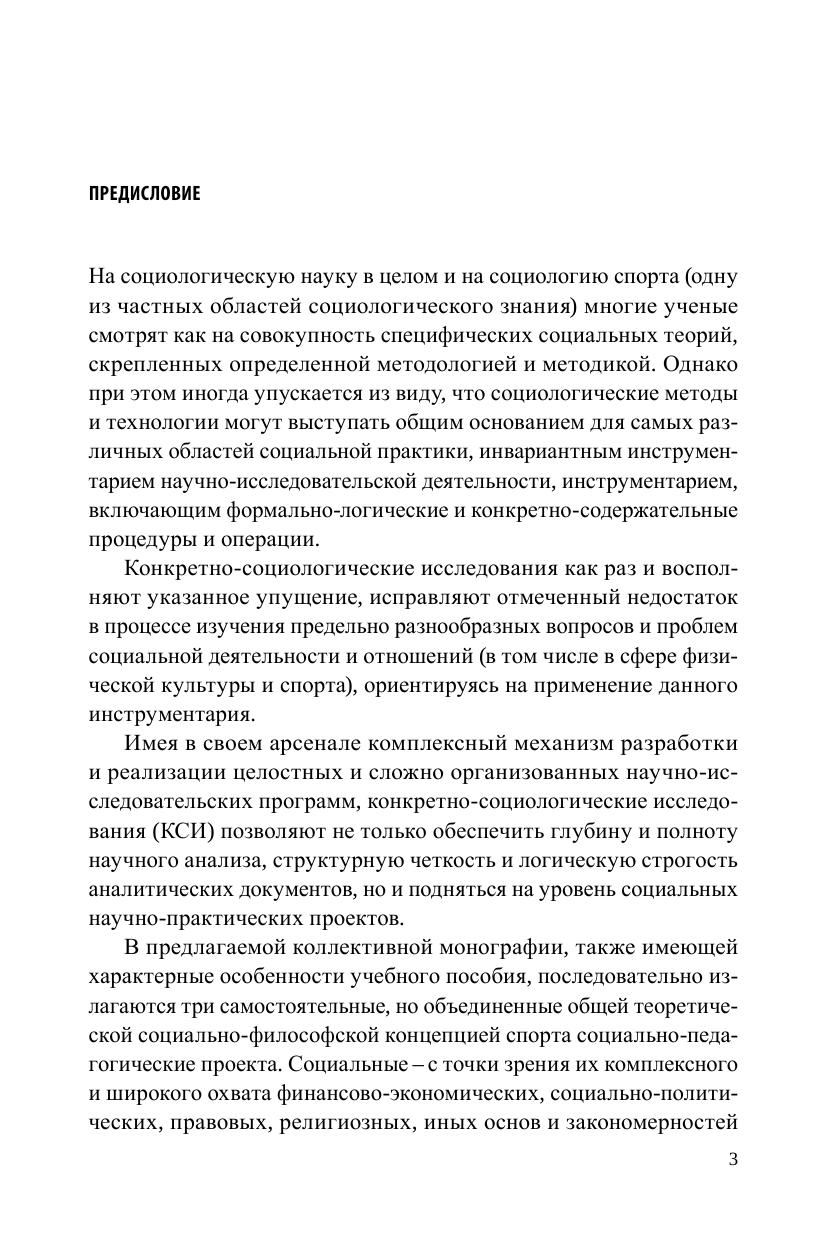 В предлагаемой коллективной монографии, также имеющей характерные особенности учебного пособия, последовательно излагаются три самостоятельных, но объединенных общей теоретической социально-философской концепцией спорта социально-педагогических проекта. Социальных – с точки зрения их комплексного и широкого охвата финансово-экономических, социально-политических, правовых, религиозных, иных основ и закономерностей функционирования и развития сферы физической культуры и спорта. Педагогических – с позиции их учебно-образовательной направленности на широкие круги физкультурно-спортивной общественности.