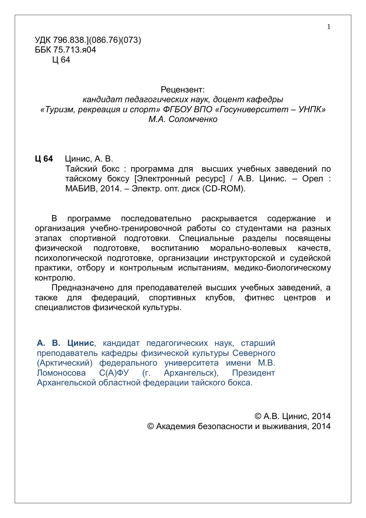 Тайский бокс: программа для высших учебных заведений по тайскому боксу