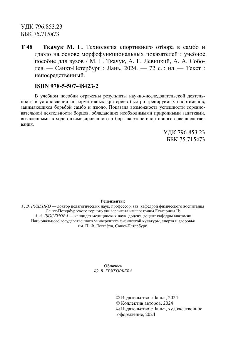 В учебном пособии отражены результаты научно-исследовательской деятельности в установлении информативных критериев быстро тренируемых спортсменов, занимающихся борьбой самбо и дзюдо. Показана возможность успешности соревновательной деятельности борцов, обладающих необходимыми природными задатками, выявленными в ходе оптимизированного отбора на этапе спортивного совершенствования.