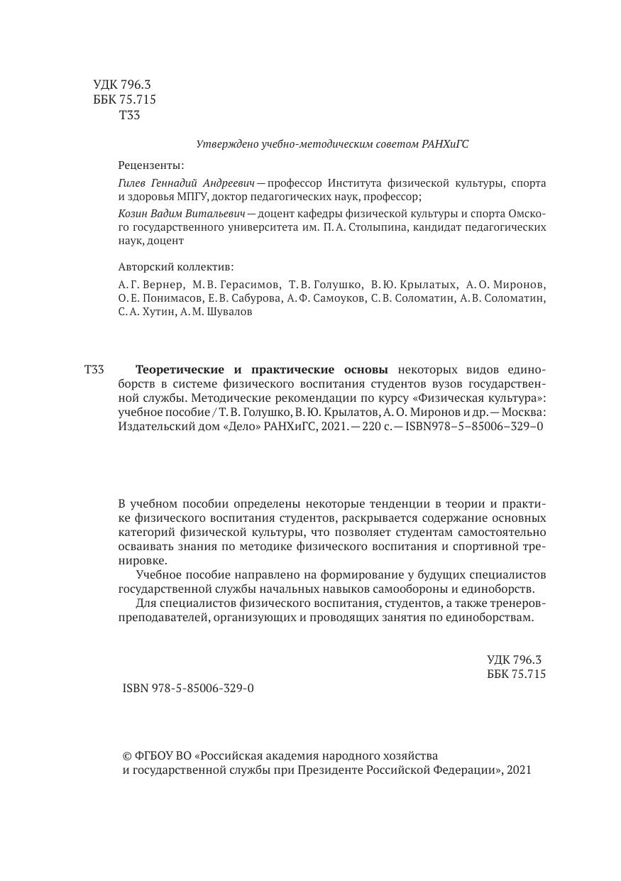 Теоретические и практические основы некоторых видов единоборств в системе физического воспитания студентов вузов государственной службы. Методические рекомендации по курсу «Физическая культура»