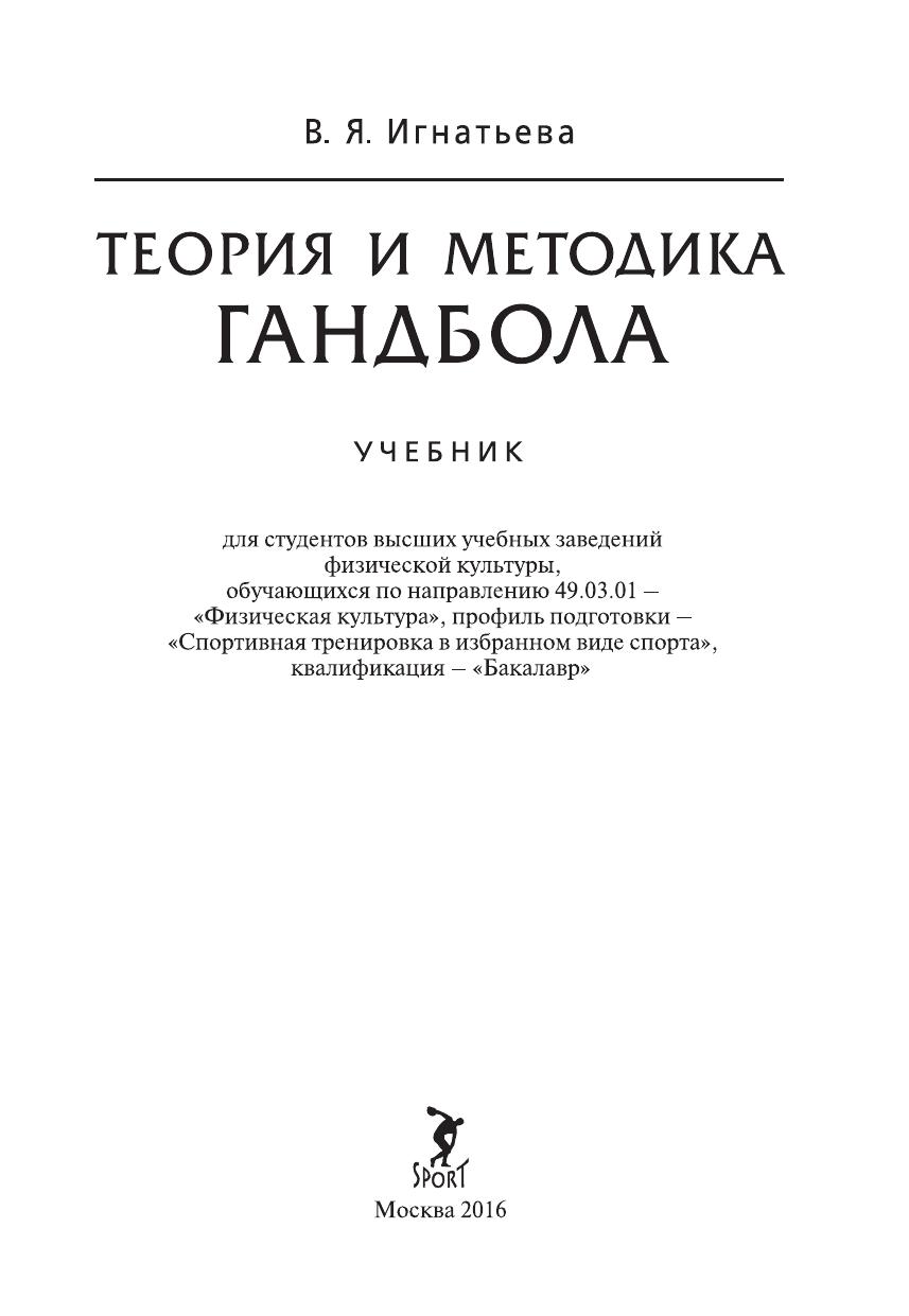 Теория и методика гандбола. Учебник