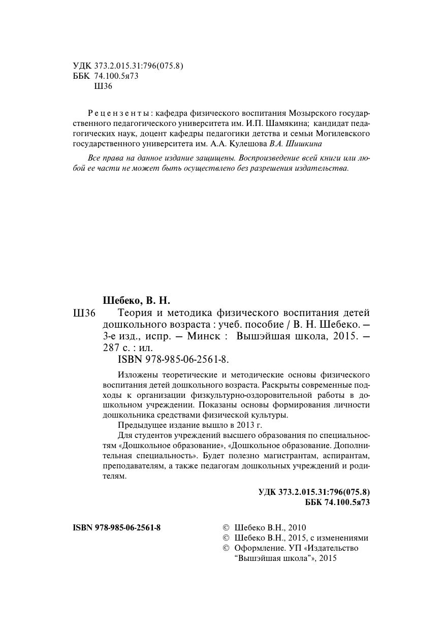 Гриф: Допущено Министерством образования Республики Беларусь в качестве учебного пособия для студентов учреждений высшего образования по специальностям "Дошкольное образование", "Дошкольное образование. Дополнительная специальность"
